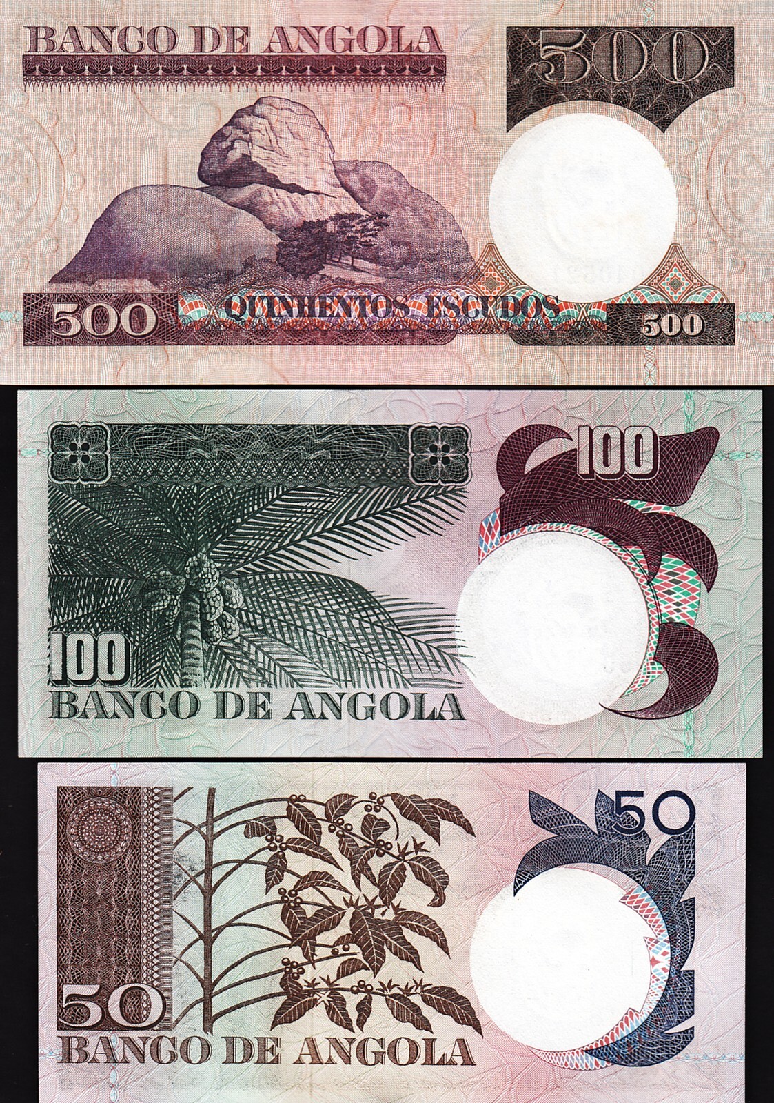 Angola 50 100 500 Escudos 1973, P-105 106 107