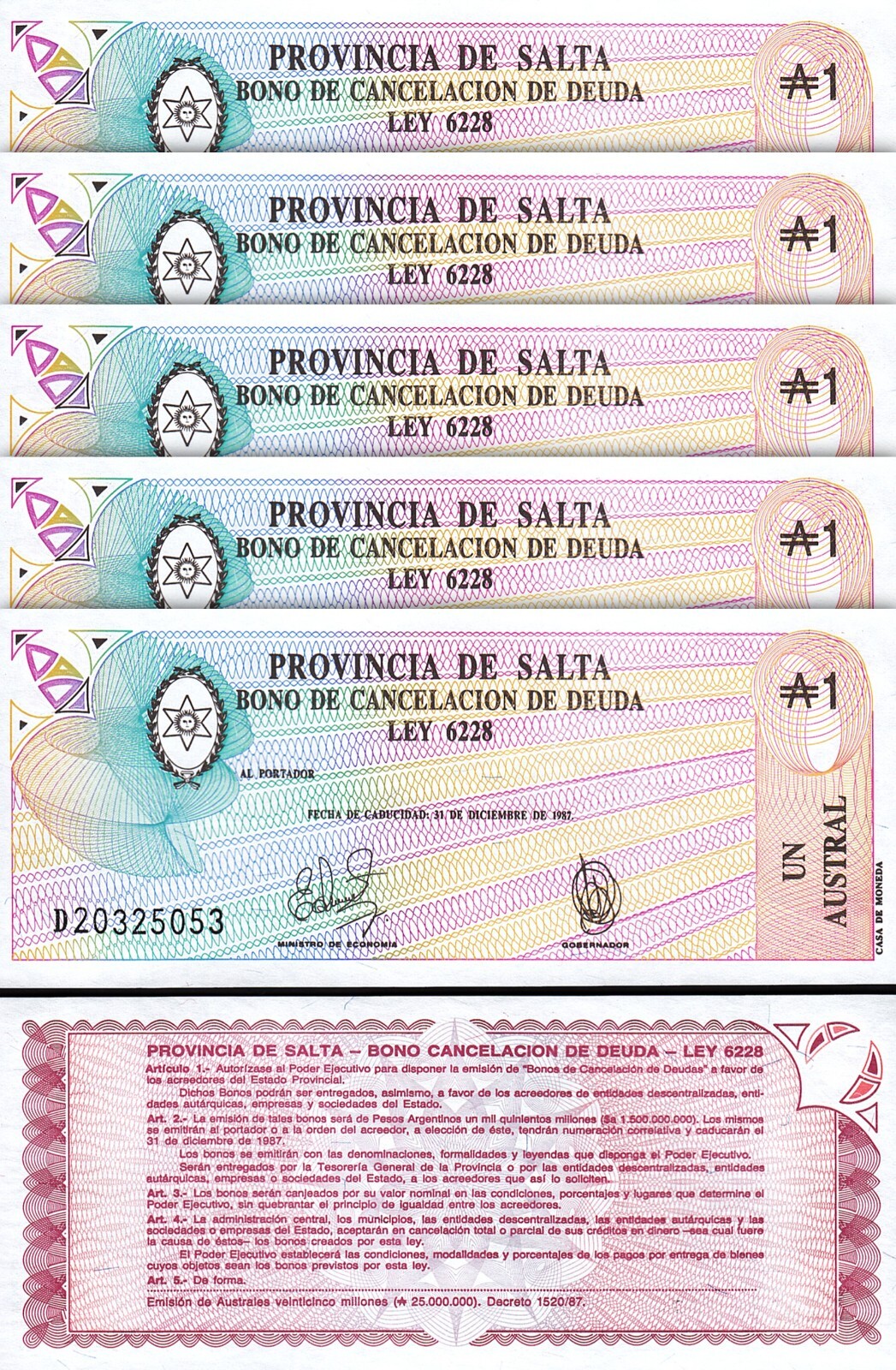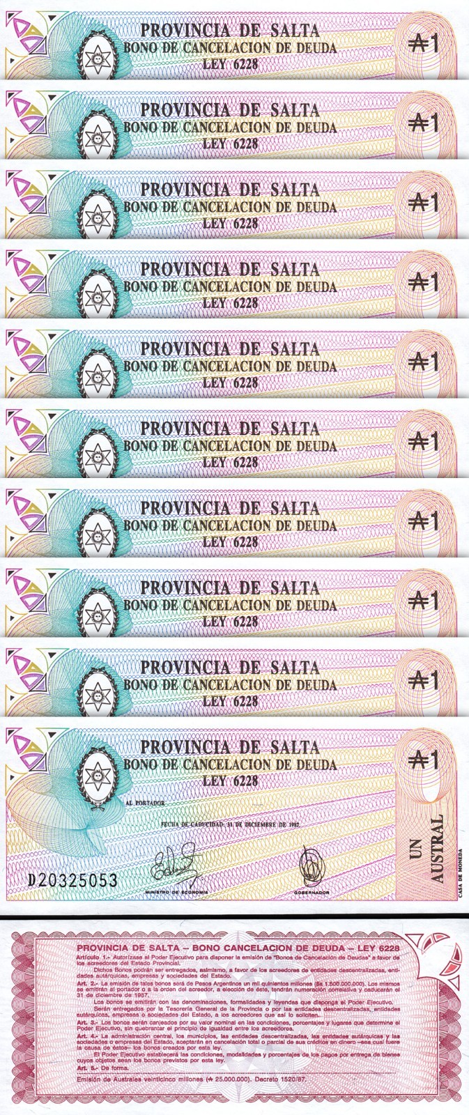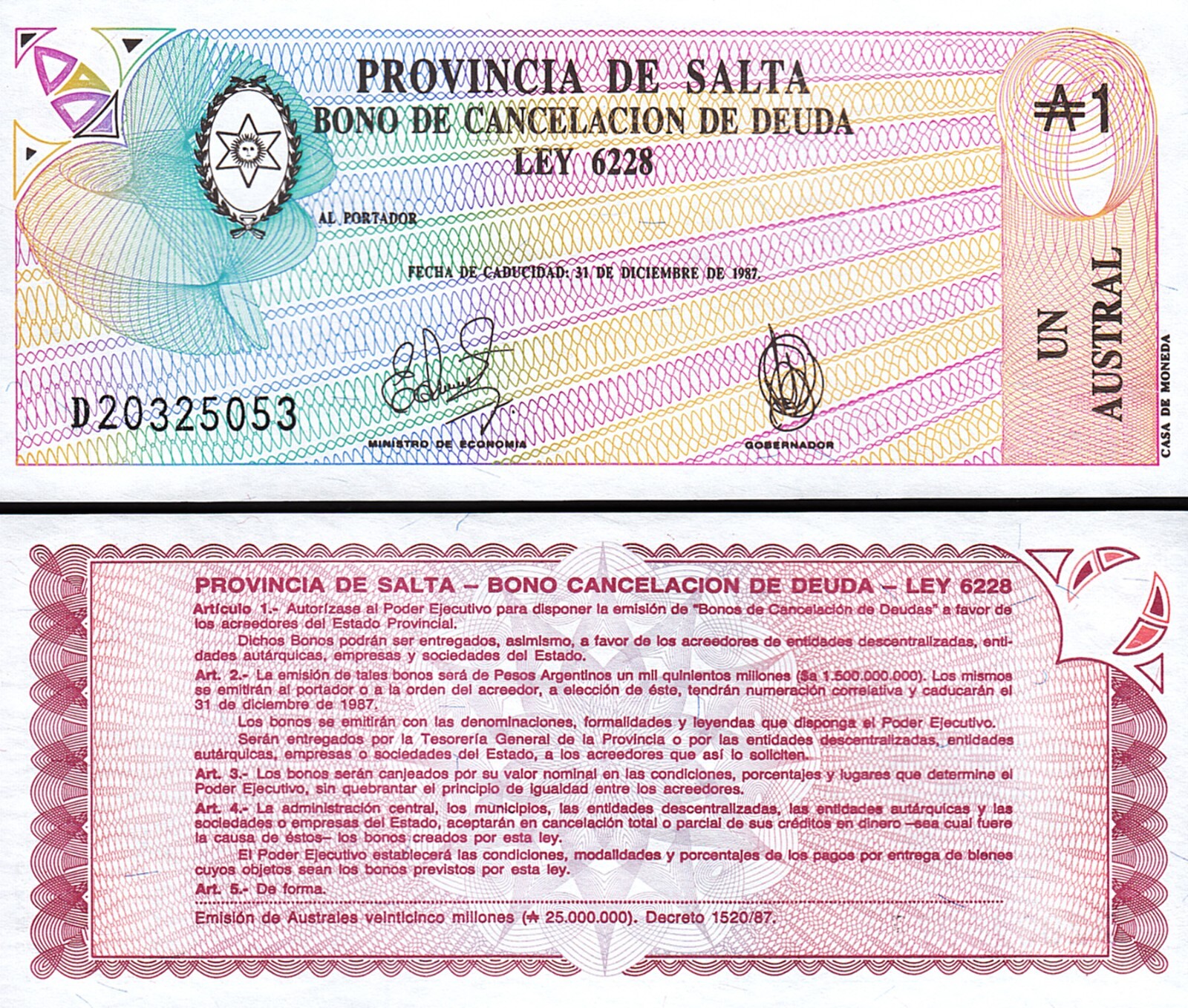 Argentina 1 Austral 1987 Province de Salta, P-S2612e