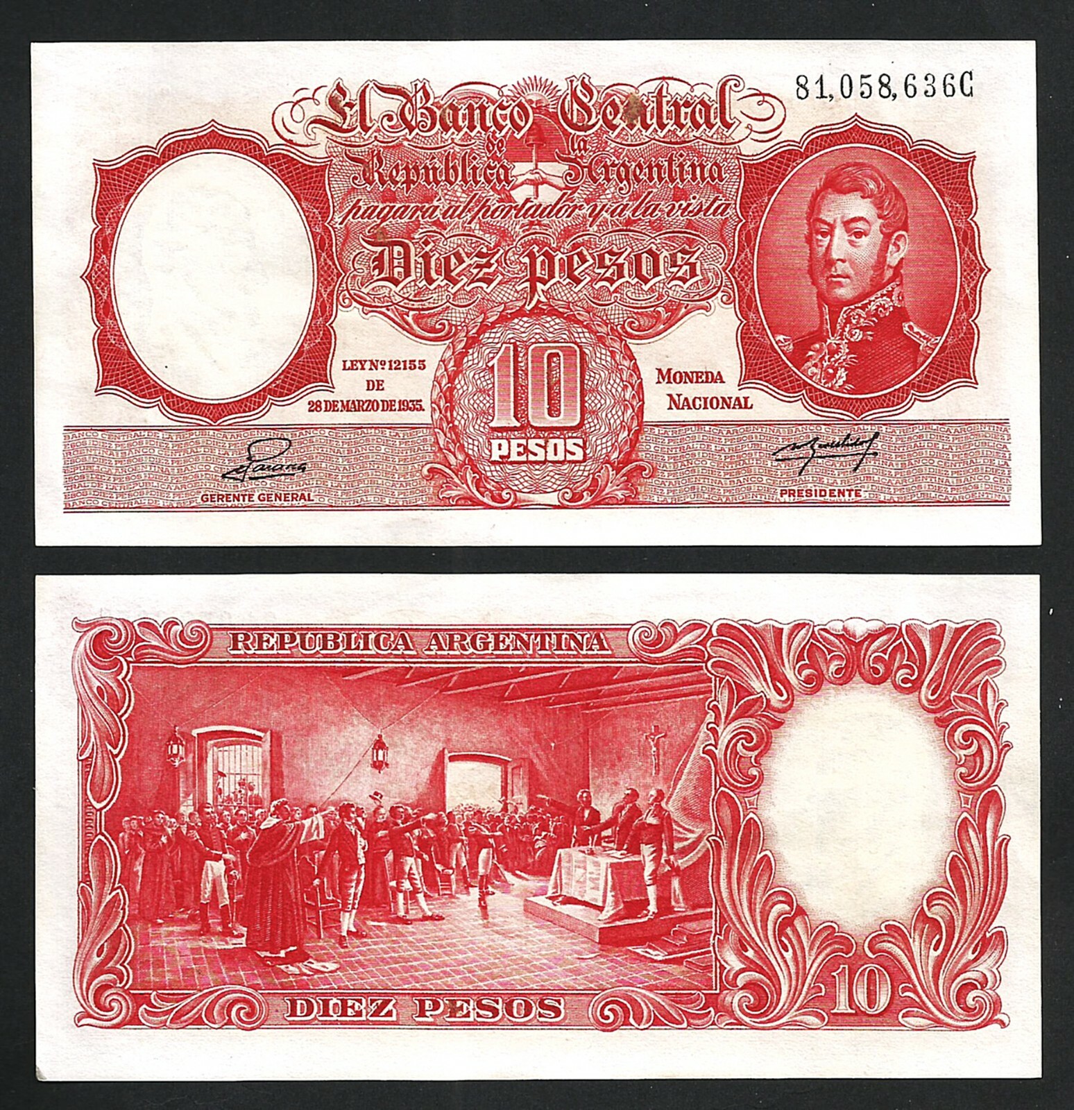 Argentina 10 Pesos 1953, VF, P-265b, Series C