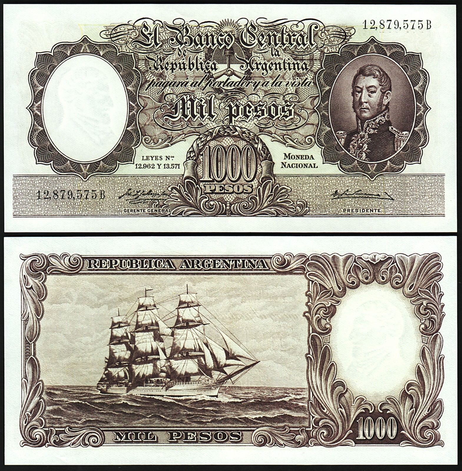 ARGENTINA 1000 PESOS 1965, P-273, SERIE B
