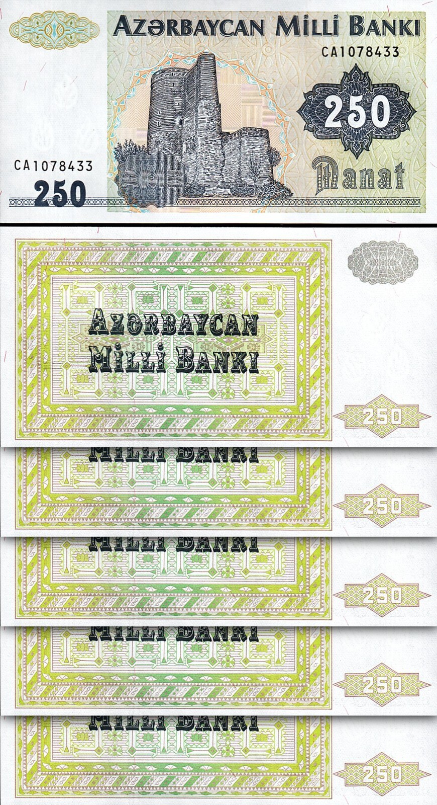 AZERBAIJAN 250 MANAT 1992 , P-13b , PREFIX CA