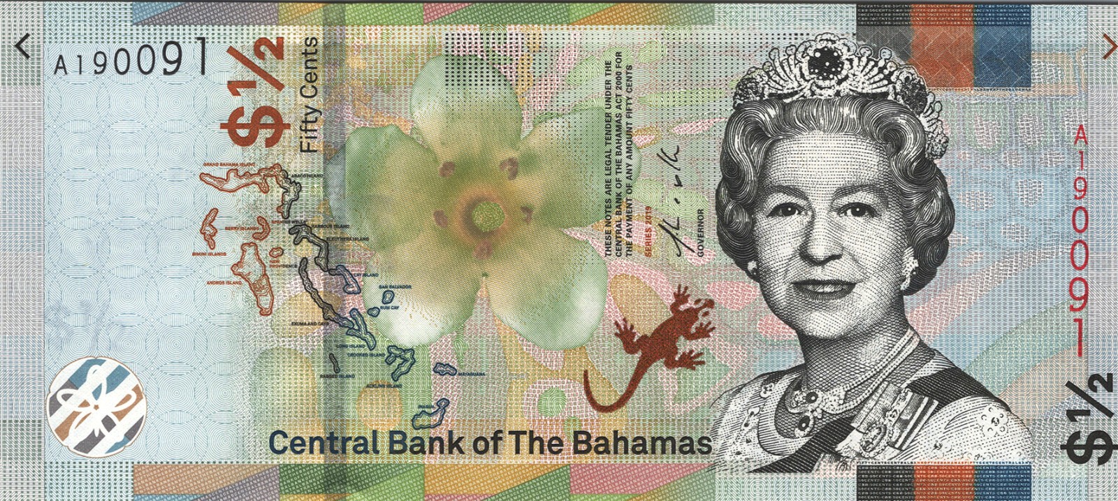 BAHAMAS 1/2 DOLLAR, 50 CENT 2019, P-76, PREFIX A