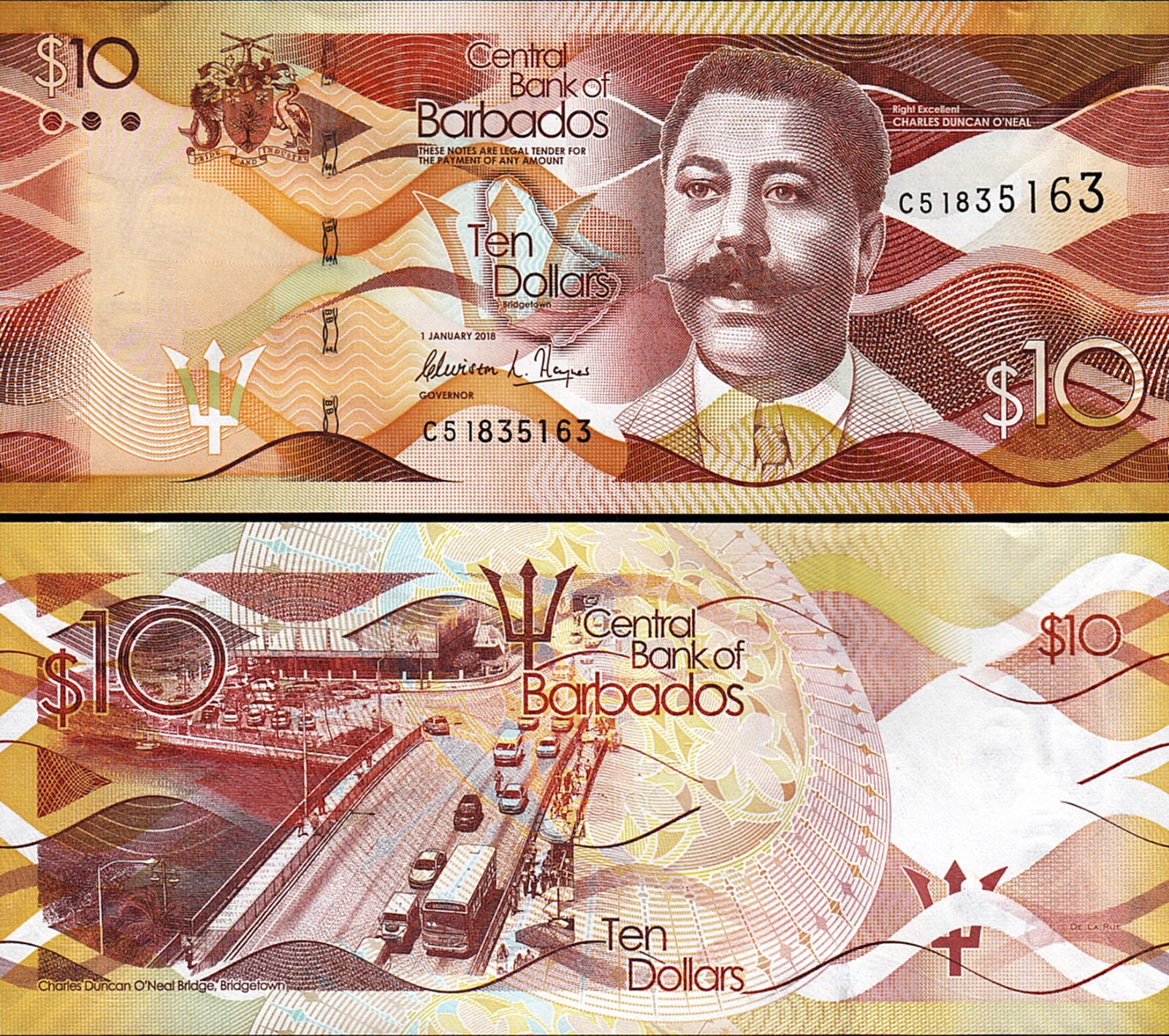 BARBADOS 10 DOLLARS 2018, P-75c