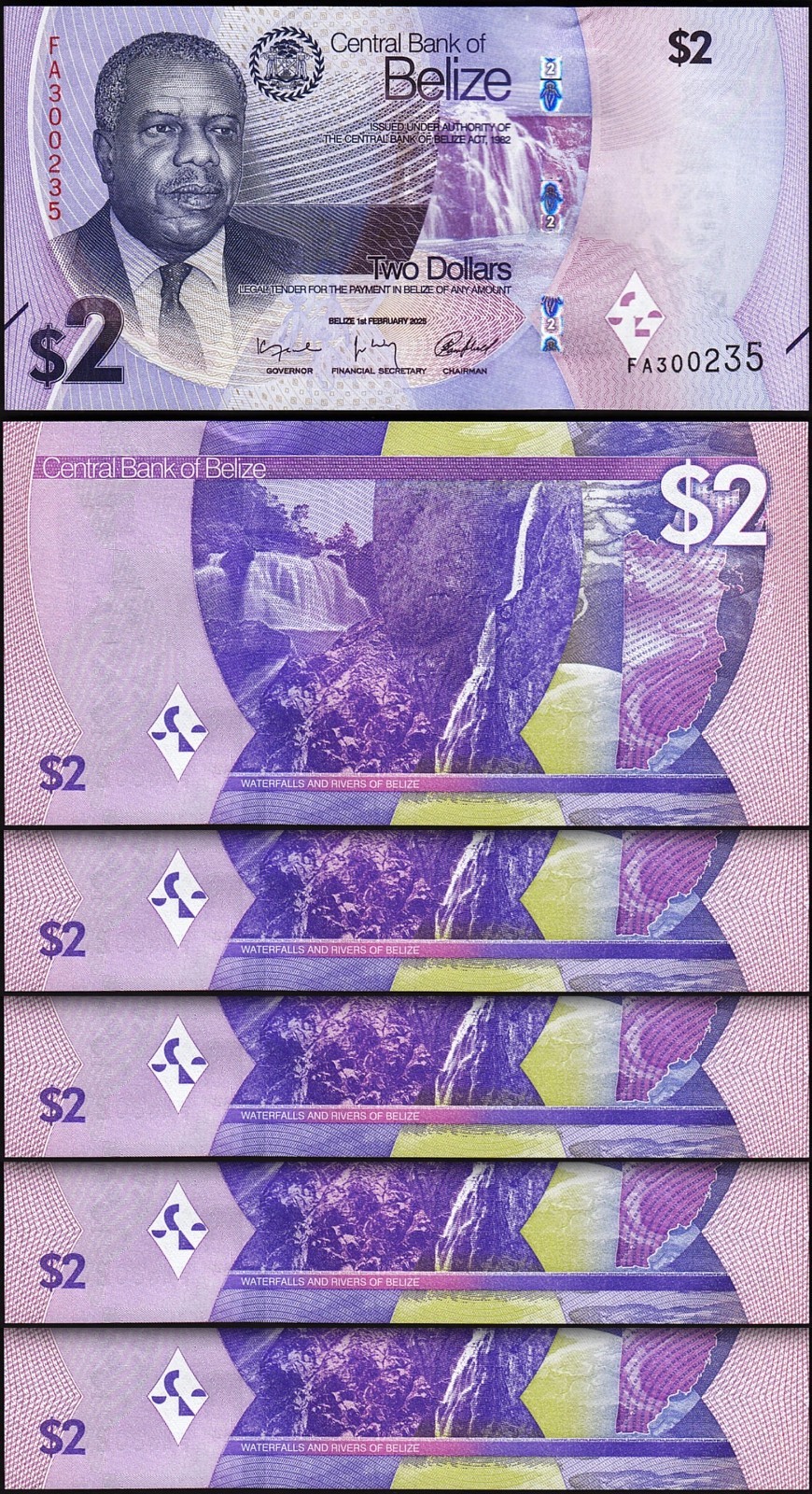 Belize 2 Dollars 2025, P-73, New Sign New Date