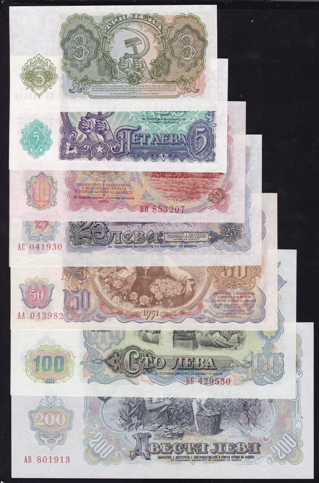 Bulgaria 7 Pcs Set, 3 5 10 25 50 100 200 Leva 1951,