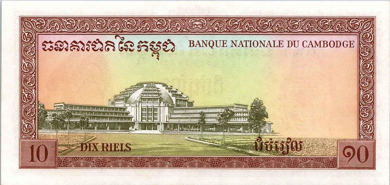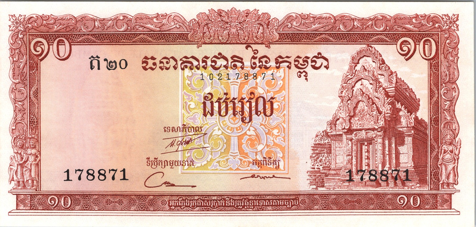 CAMBODIA 10 RIELS ND 1962-1975, P-11d, 6 DIGIT SERIAL