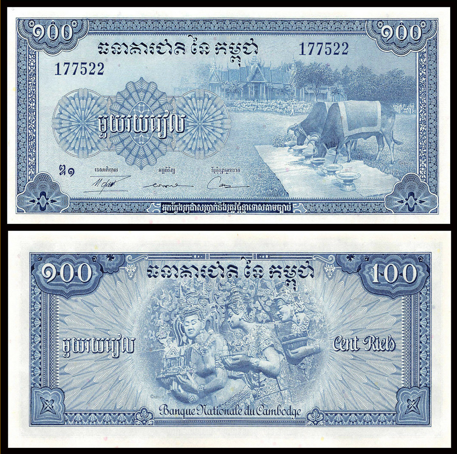 CAMBODIA 100 RIELS 1956 – 1972, P-13b, SIGN 12