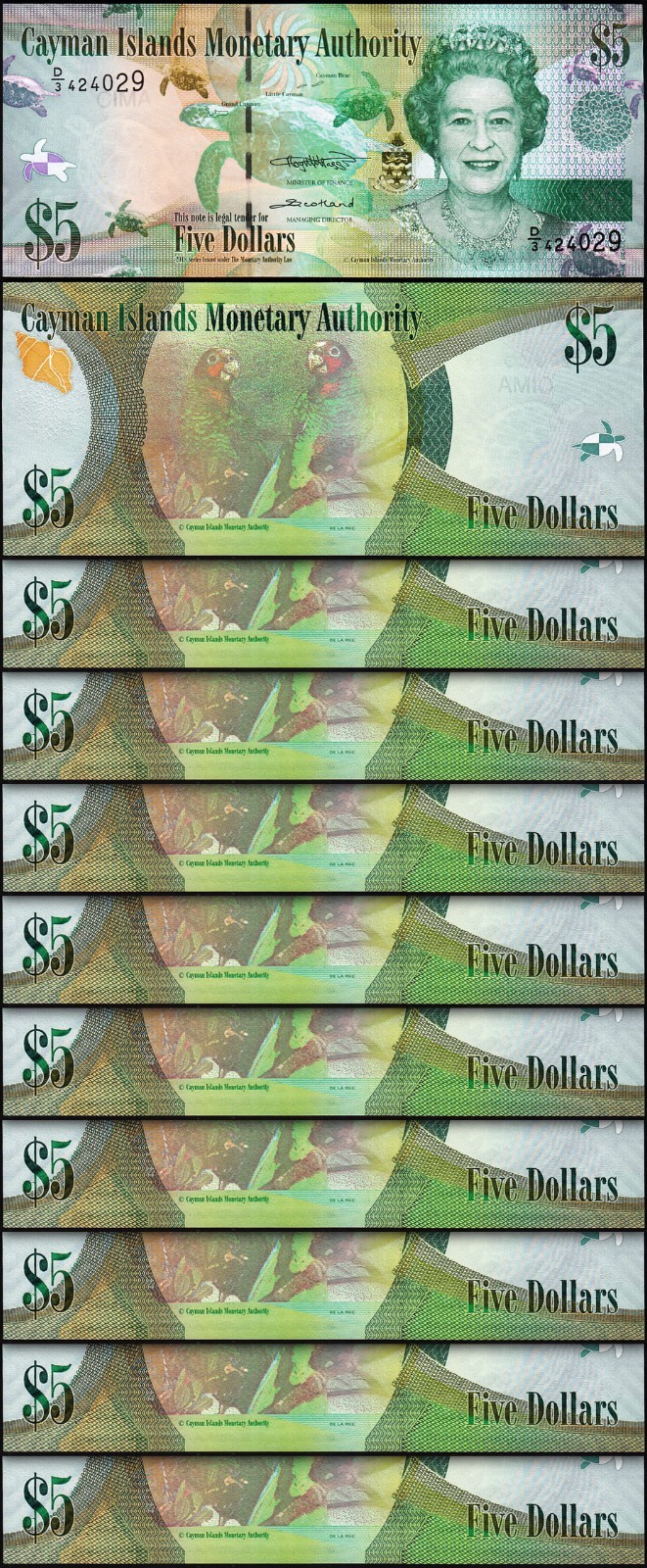 Cayman Islands 5 Dollars 2018, QEII, Prefix D/3, P-39c