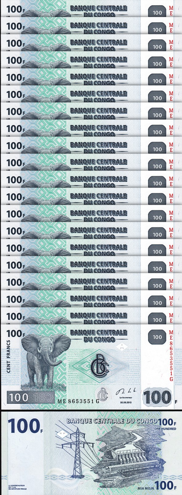 CONGO 100 FRANCS 2013, P-98B, PREFIX ME