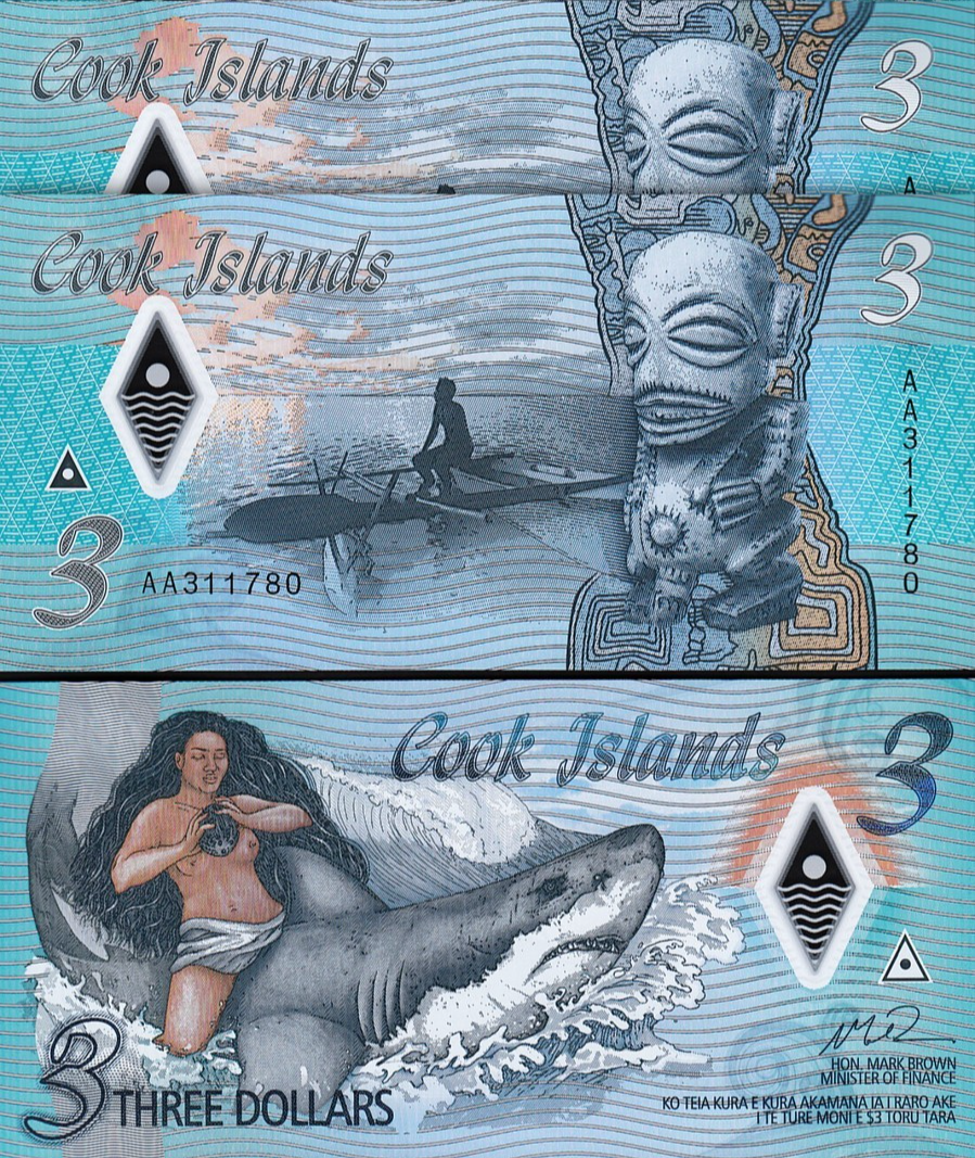 Cook Islands 3 Dollars 2021, Polymer, P-11a, Prefix AA