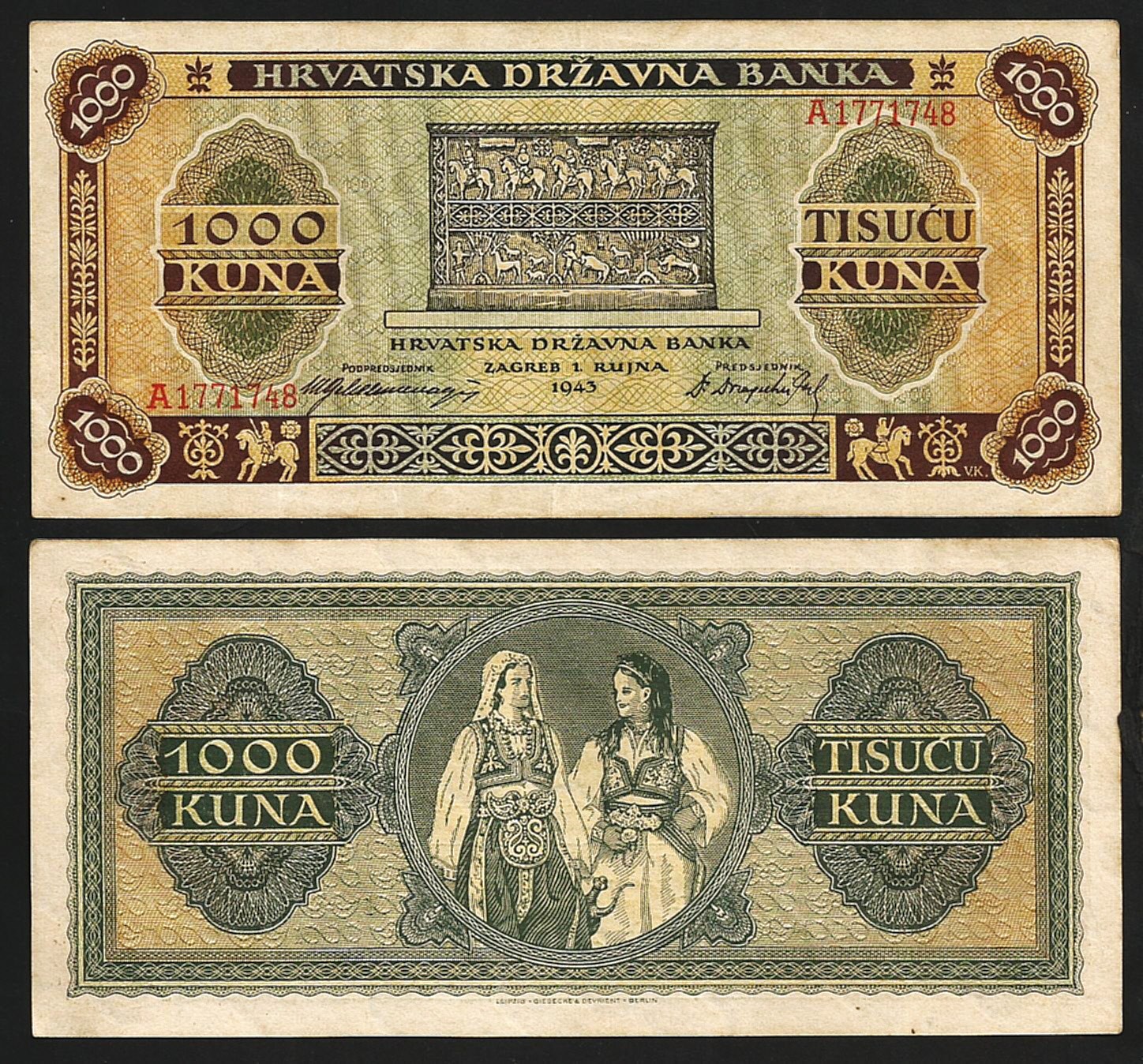 Croatia 1000 Kuna 1943, XF, P-12