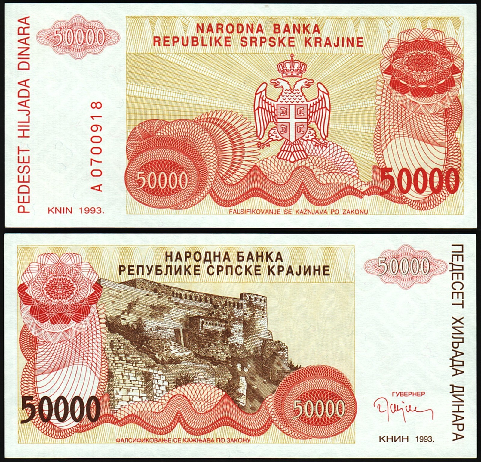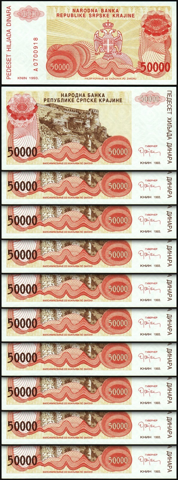 CROATIA 50000 50,000 DINARA 1993, P-R21