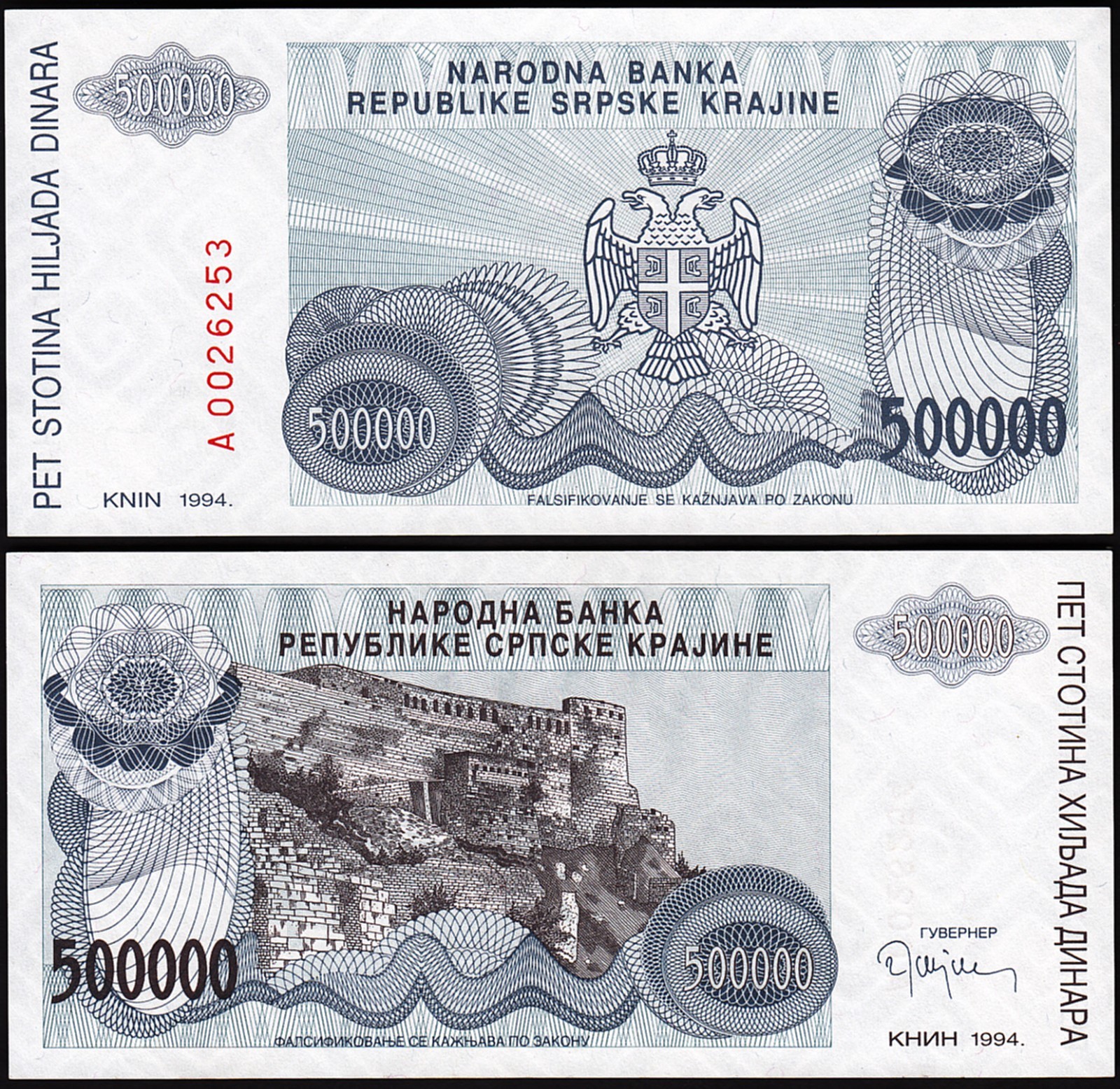 CROATIA 500000 500,000 DINARA 1994 P-R32