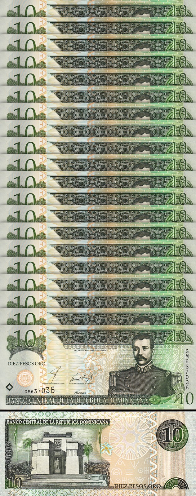 DOMINICAN REPUBLIC 10 PESOS ORO 2002 P-168b