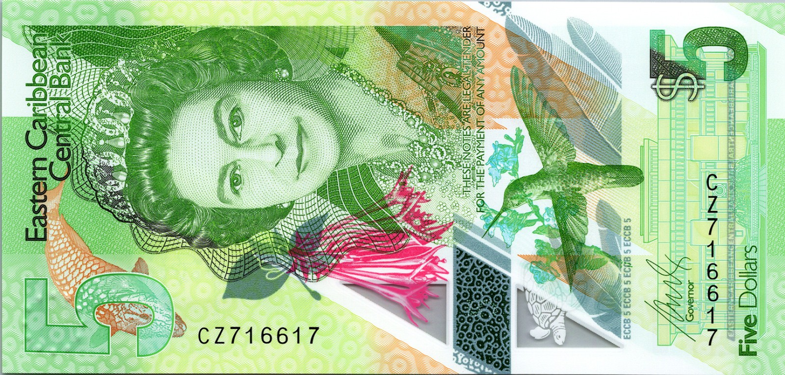 East Caribbean 5 Dollars 2021, Polymer, P-New Design