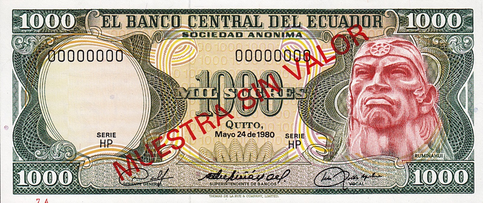 ECUADOR  1000 SUCRES 1980 -HP SERIAL- Pick-120s2