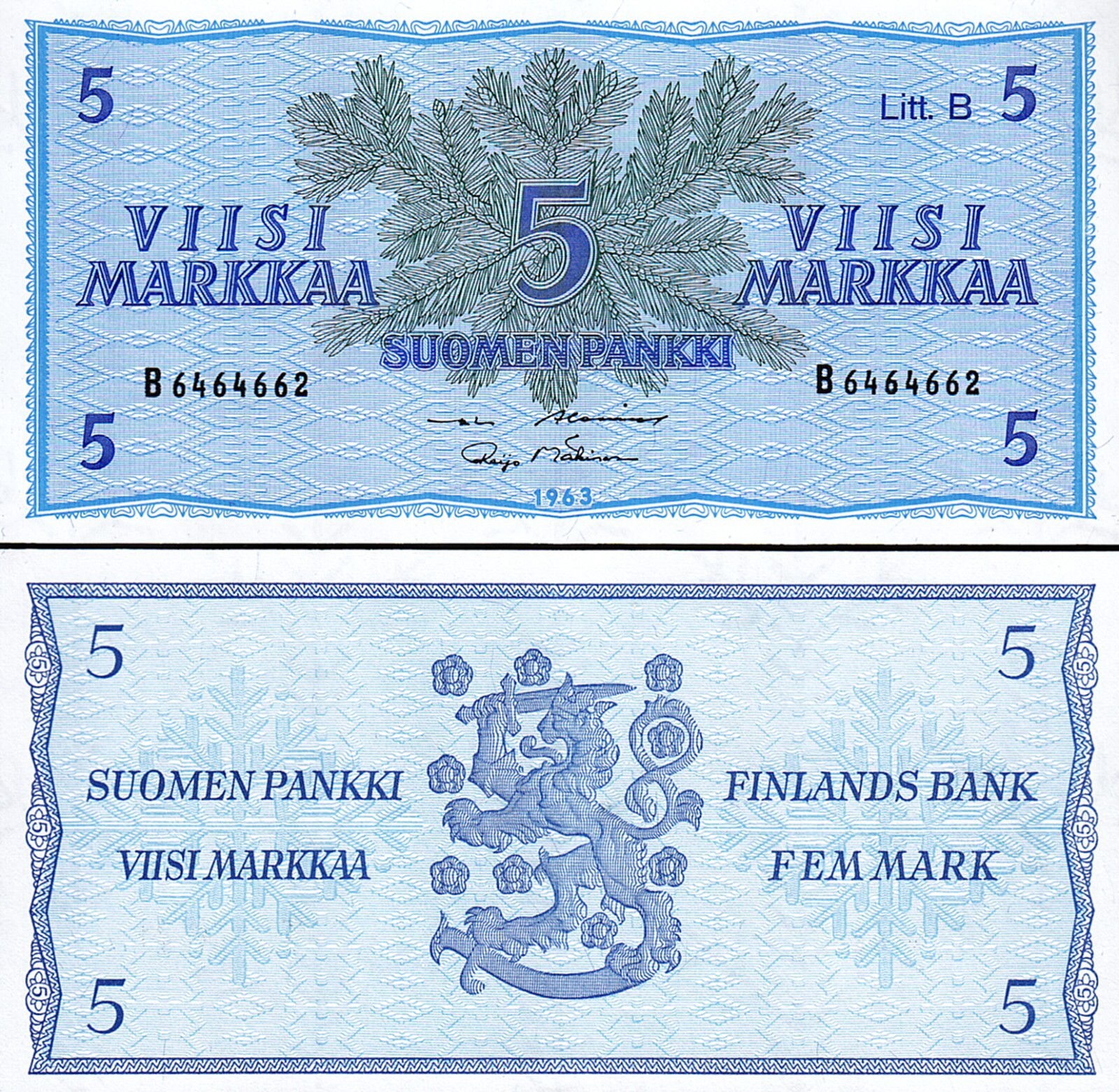 FINLAND 5 MARKKAA 1963, P-106Aa, Litt B