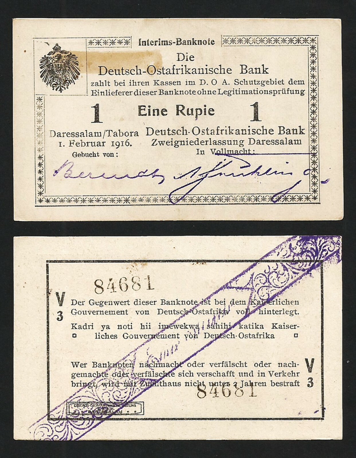 German East Africa 1 Rupee 1916, aAU (XF+AU) (8,5++/10 Condition), P-19