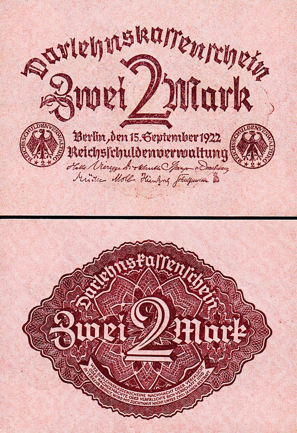 Germany 2 Mark 1922, UNC, P-62, With Completely Watermark quantity