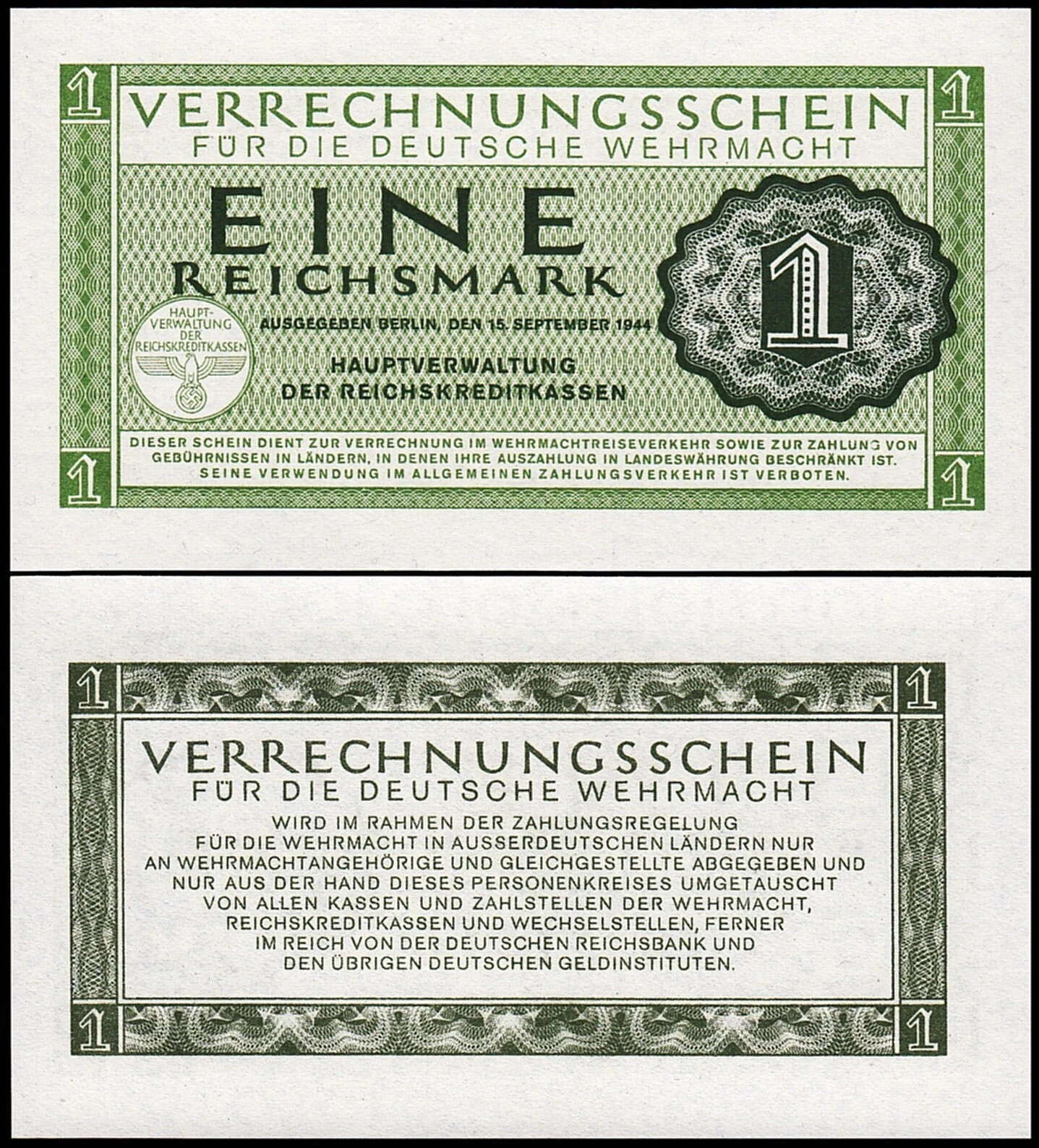 1 Reichsmark 1944, UNC, P-M38, Completely Watermark