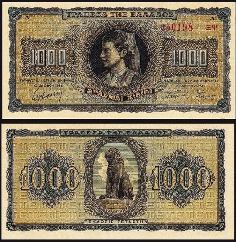Greece 1000 Drachmai 1942, P-118a, With Suffix Letters