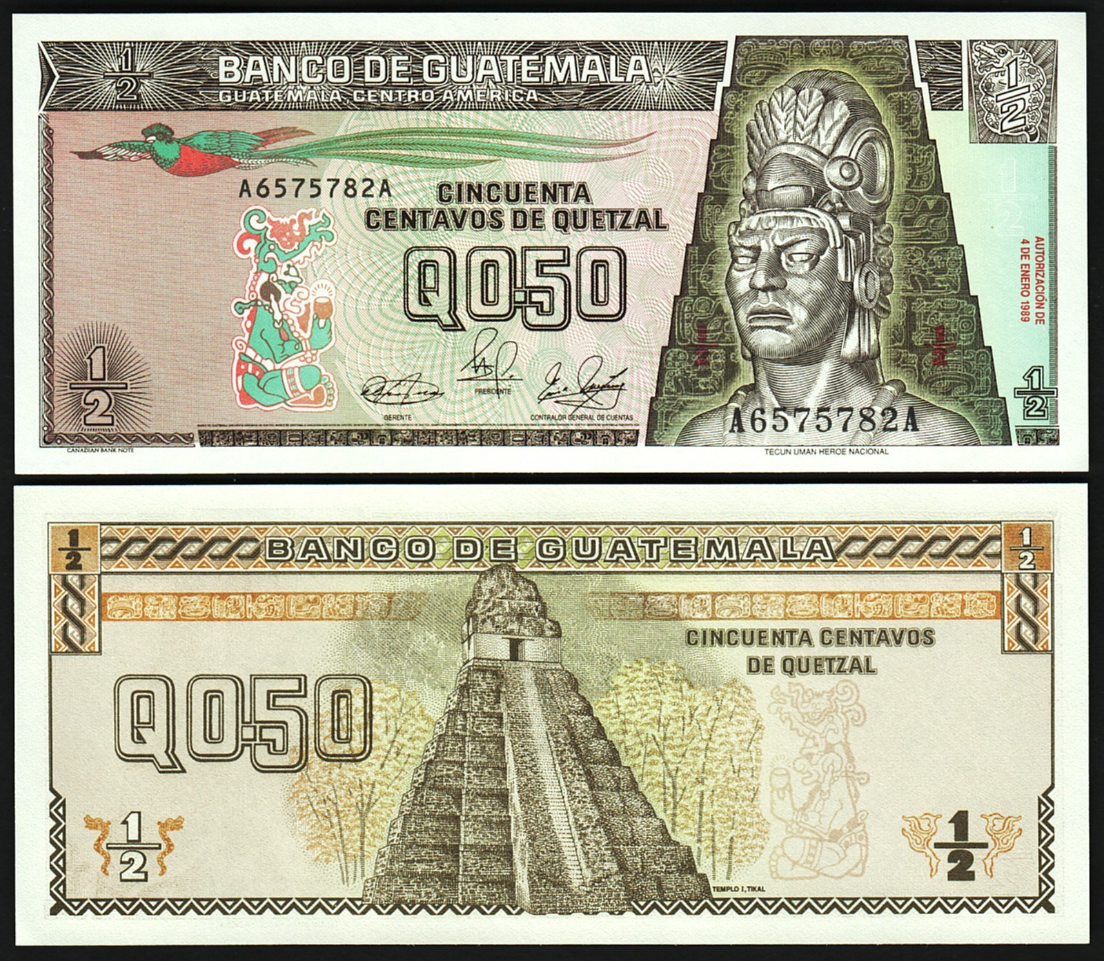 Guatemala 1/2 0,50 Quetzal 1989, P-72a