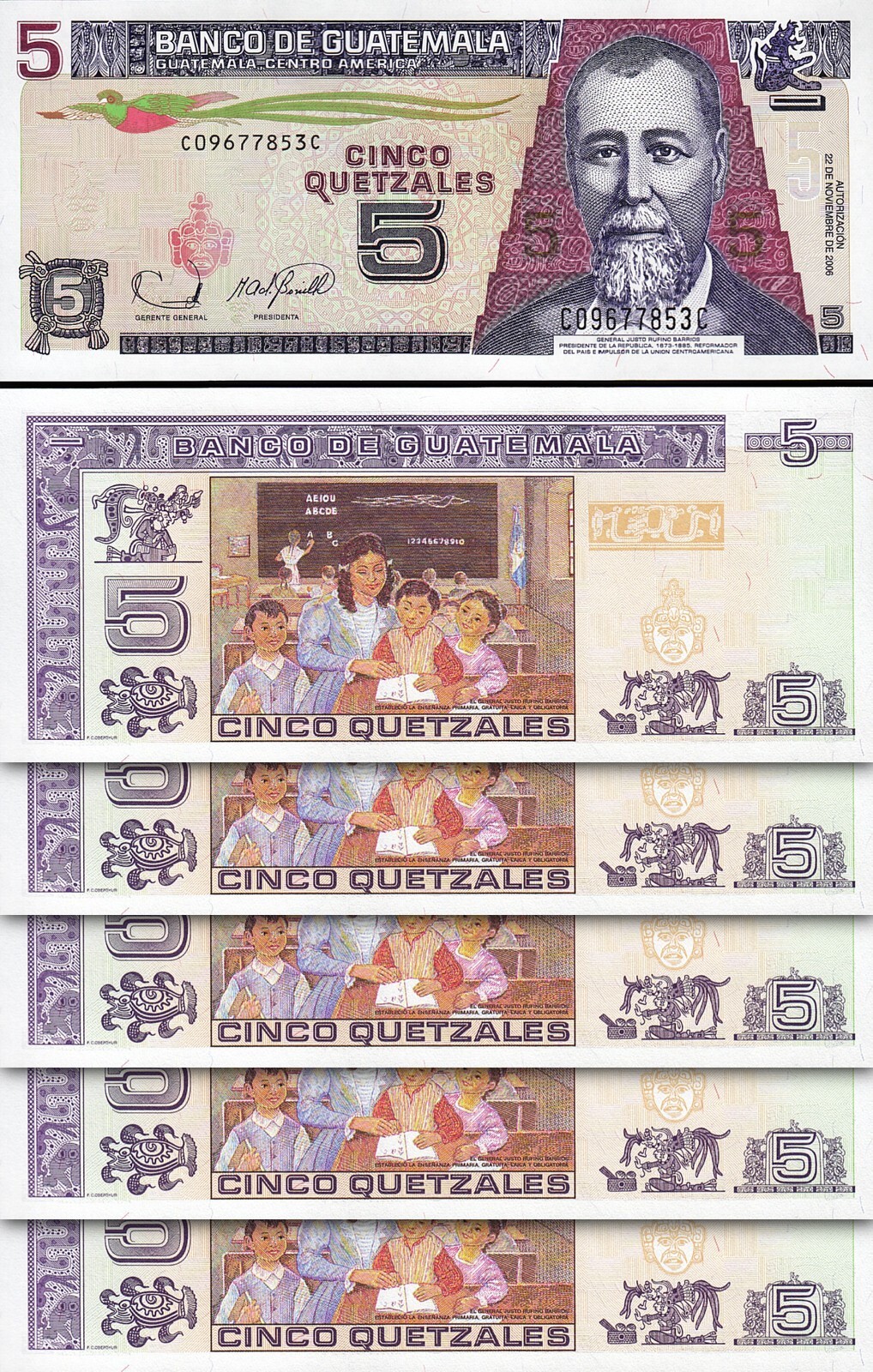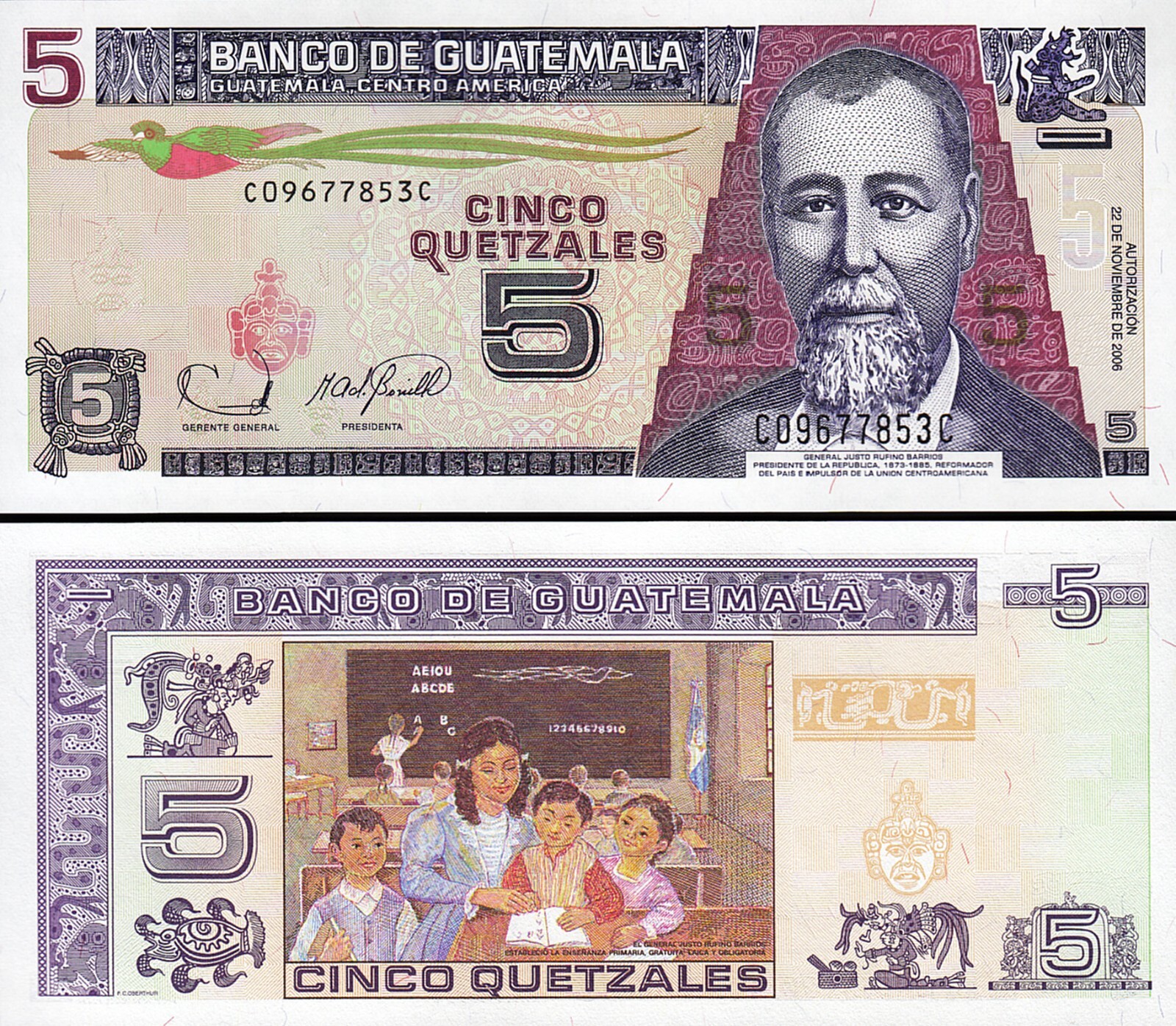 GUATEMALA 5 QUETZALES 2006, P-106B WITH FLAG PICTURE
