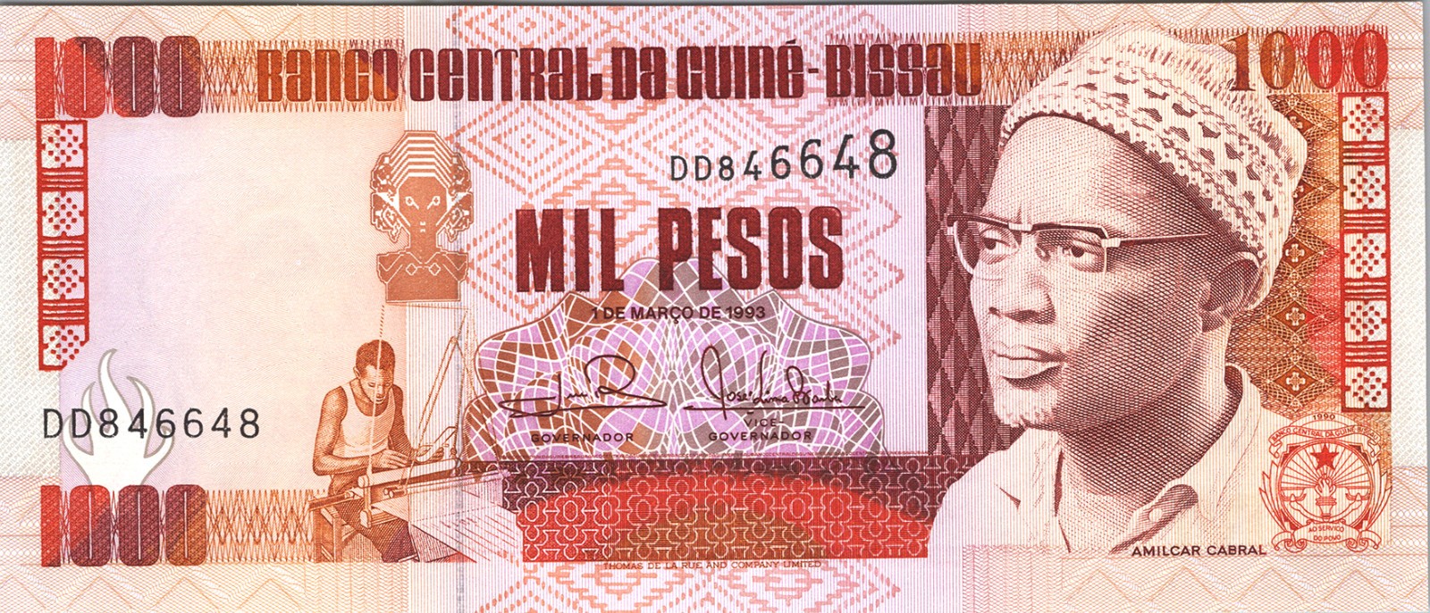 Guinea Bissau 1000 Pesos 1993, P-13b, Prefix DD