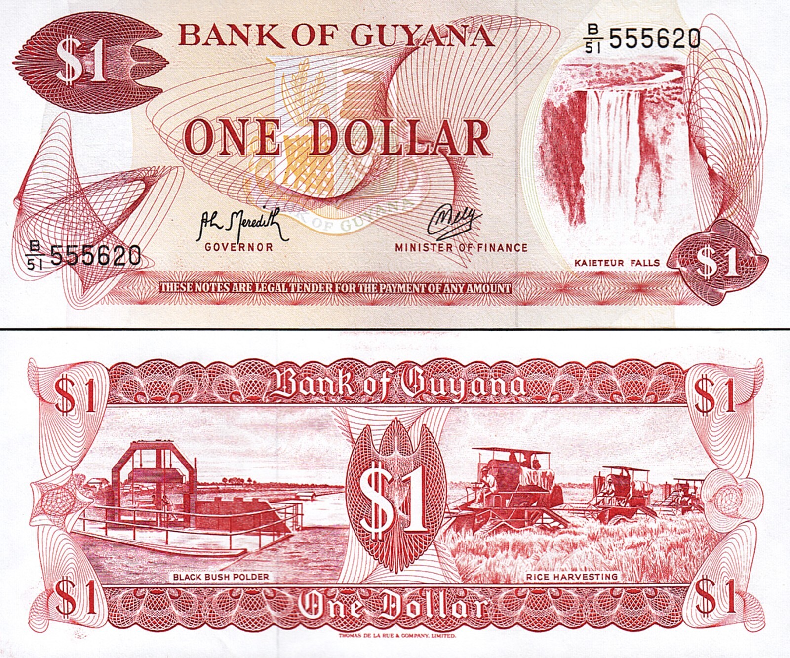 GUYANA 1 DOLLAR 1992, P-21g, Sign 9