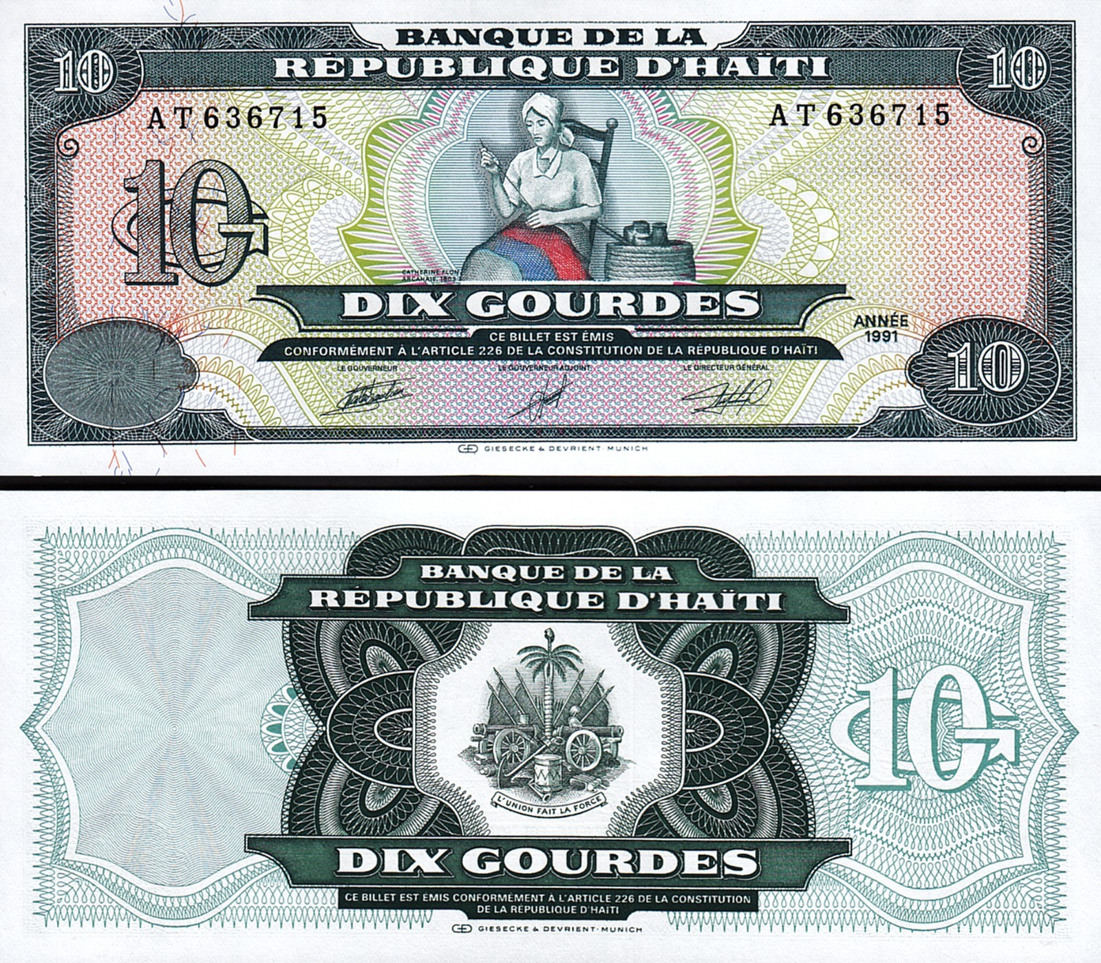 Haiti 10 Gourdes 1991, P-256, Prefix AT