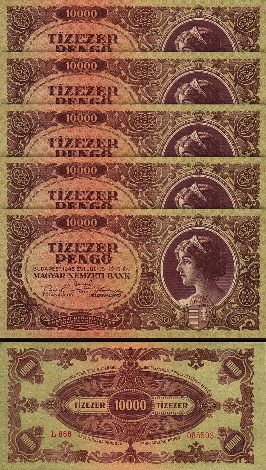 HUNGARY 10000 TIZEZER PENGO 15-07-1945, P-119A