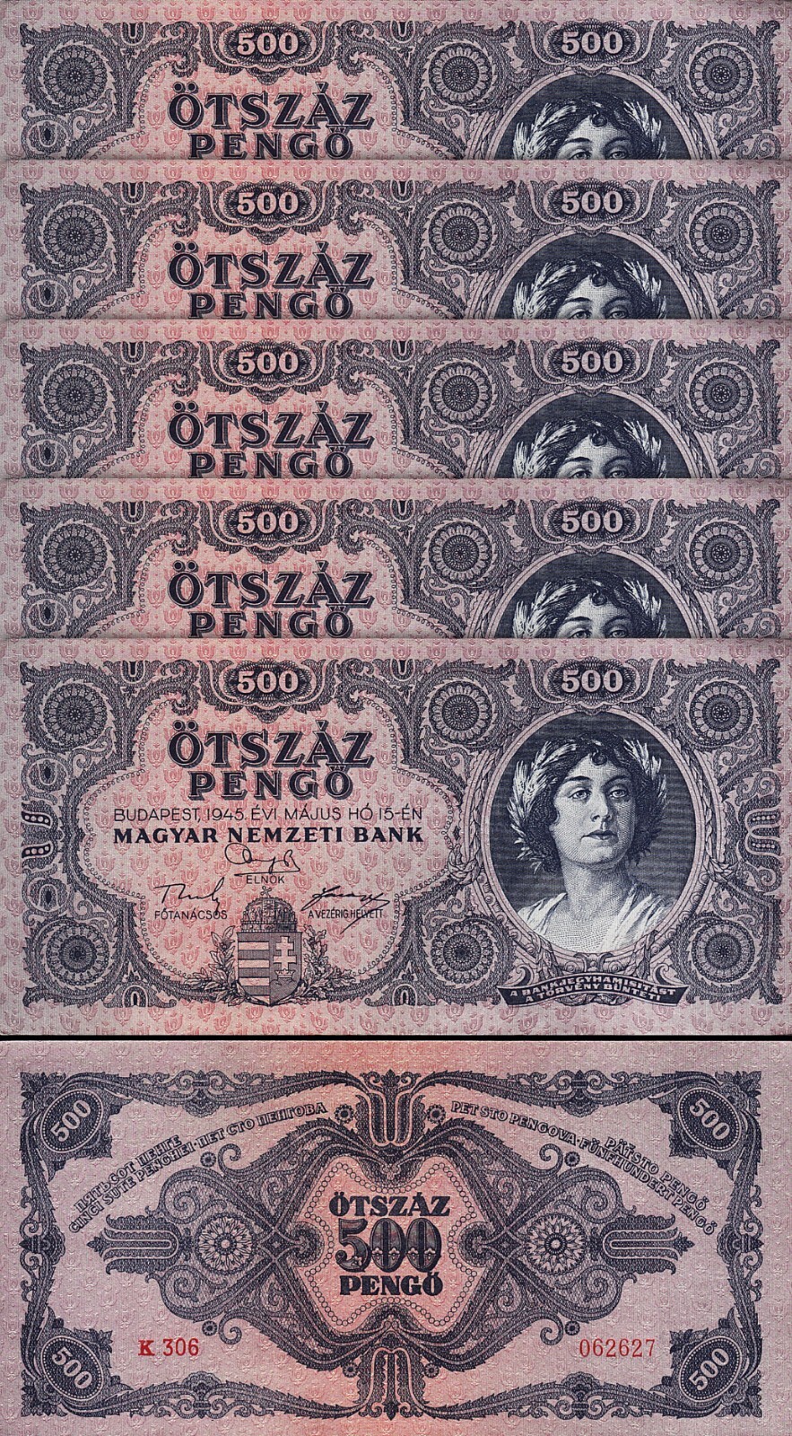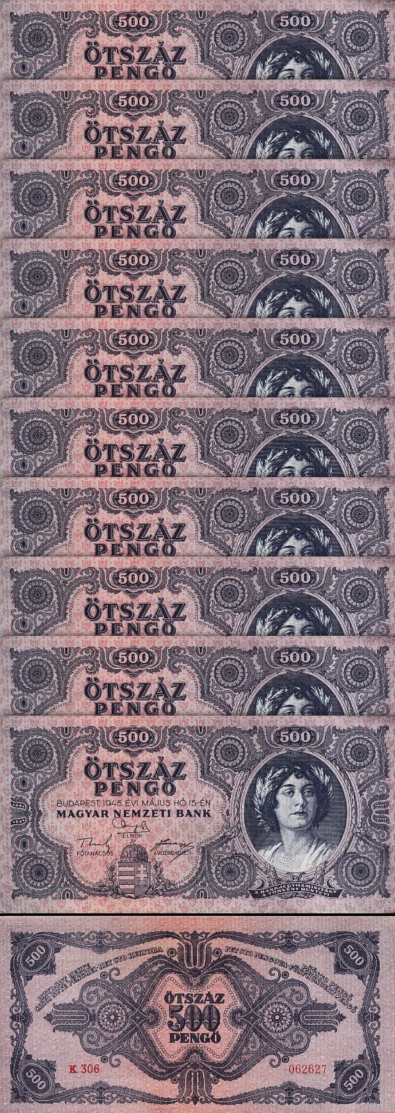 HUNGARY 500 OTSZAZ PENGO 15-05-1945, P-117A