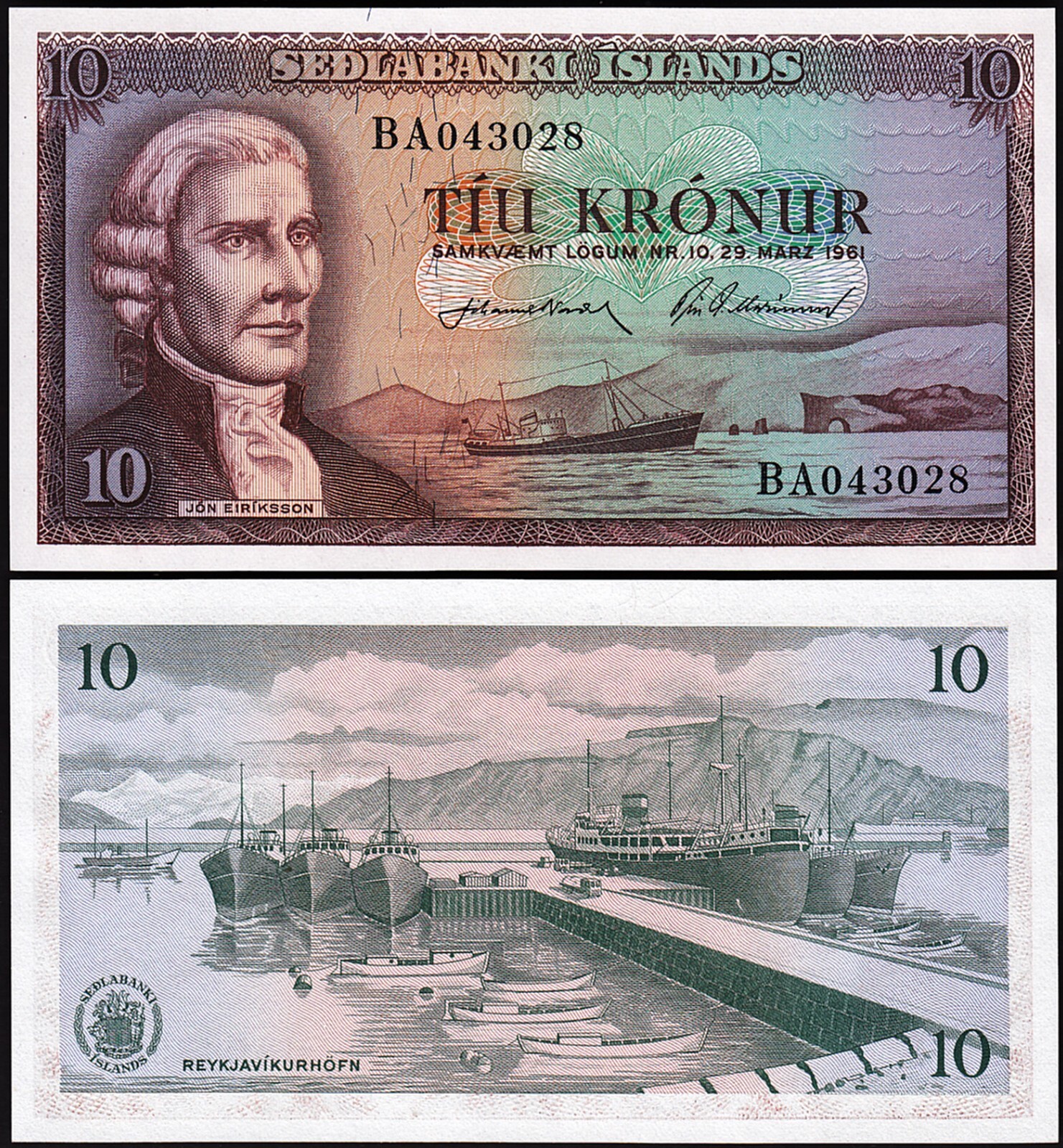 ICELAND 10 KRONUR 1961 SEDLABANKI ISLANDS