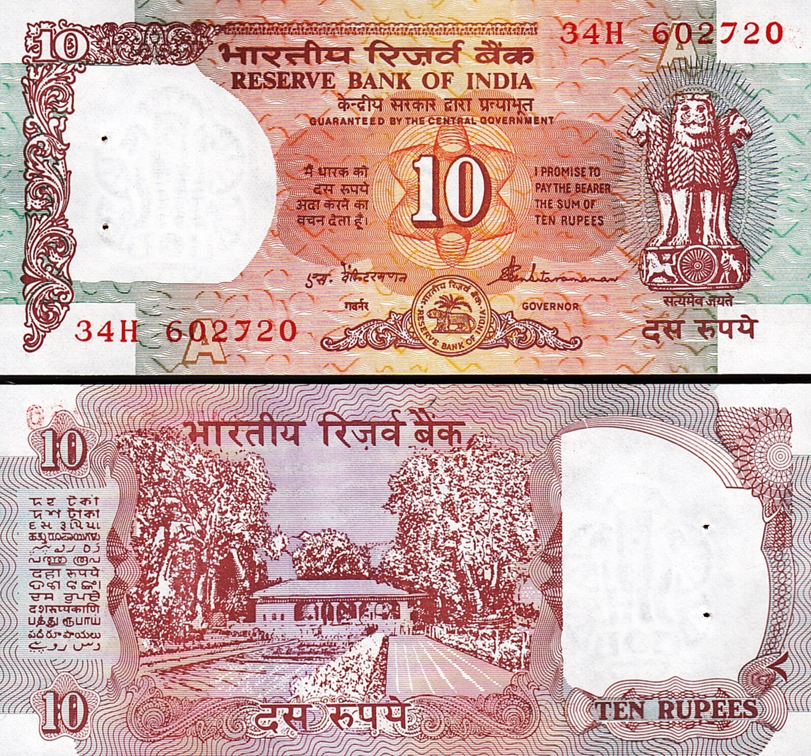 INDIA 10 RUPEES 1992, P-88b, Sign 86, Letter A
