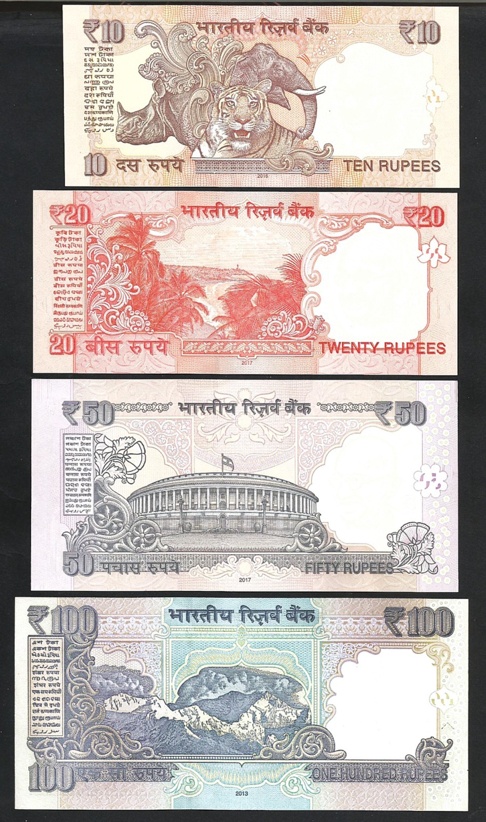India 4 Pcs Set 10 20 50 100 Rupees 2013 2017