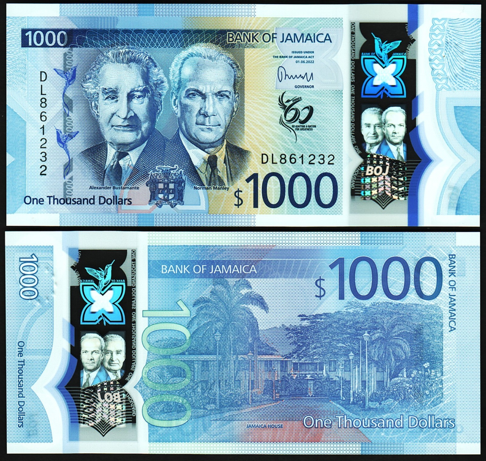 Jamaica 1000 Dollars 2022 2023, UNC, P-99 New Design