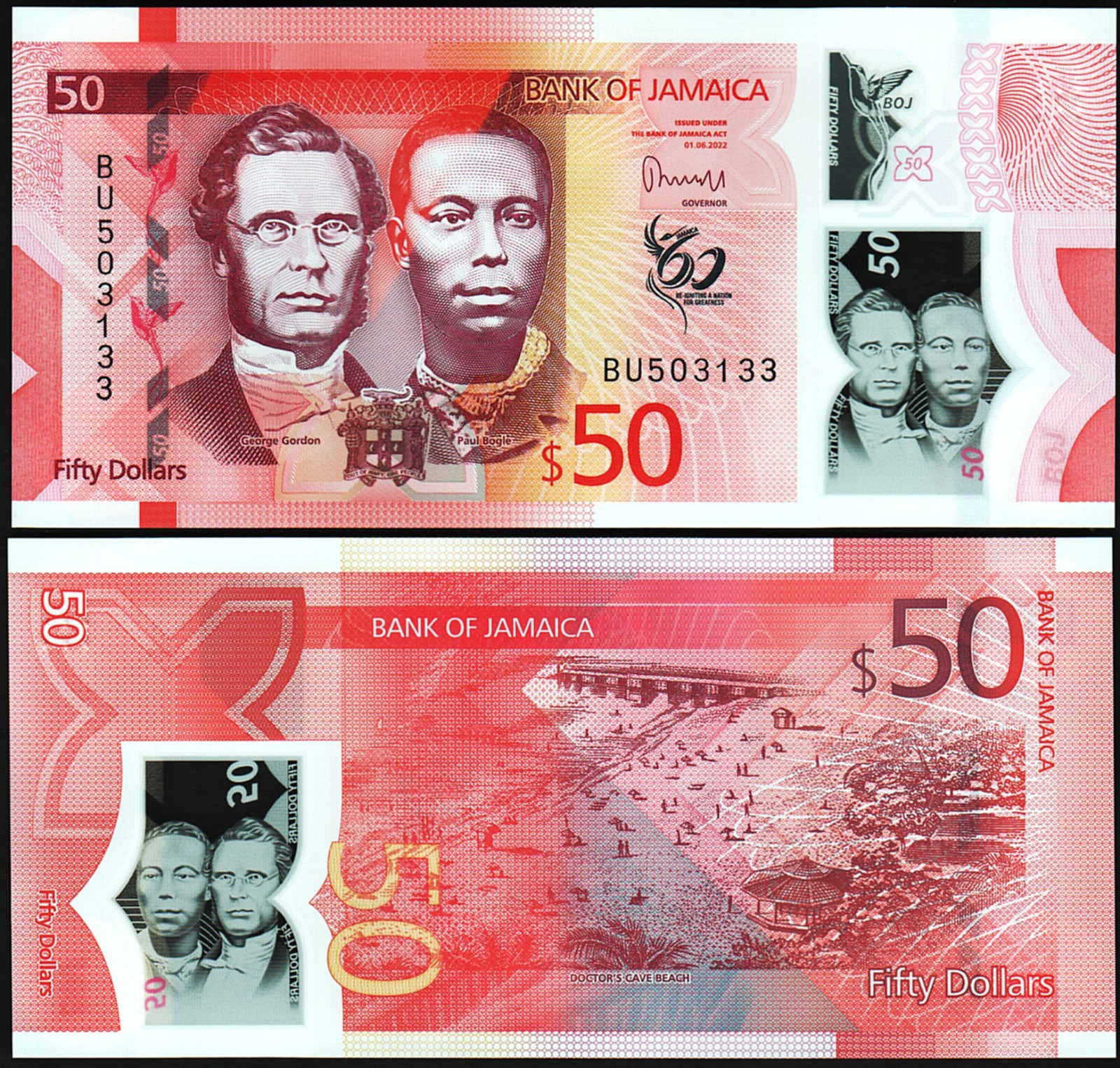 Jamaica 50 Dollars 2022 2023, P-New Design