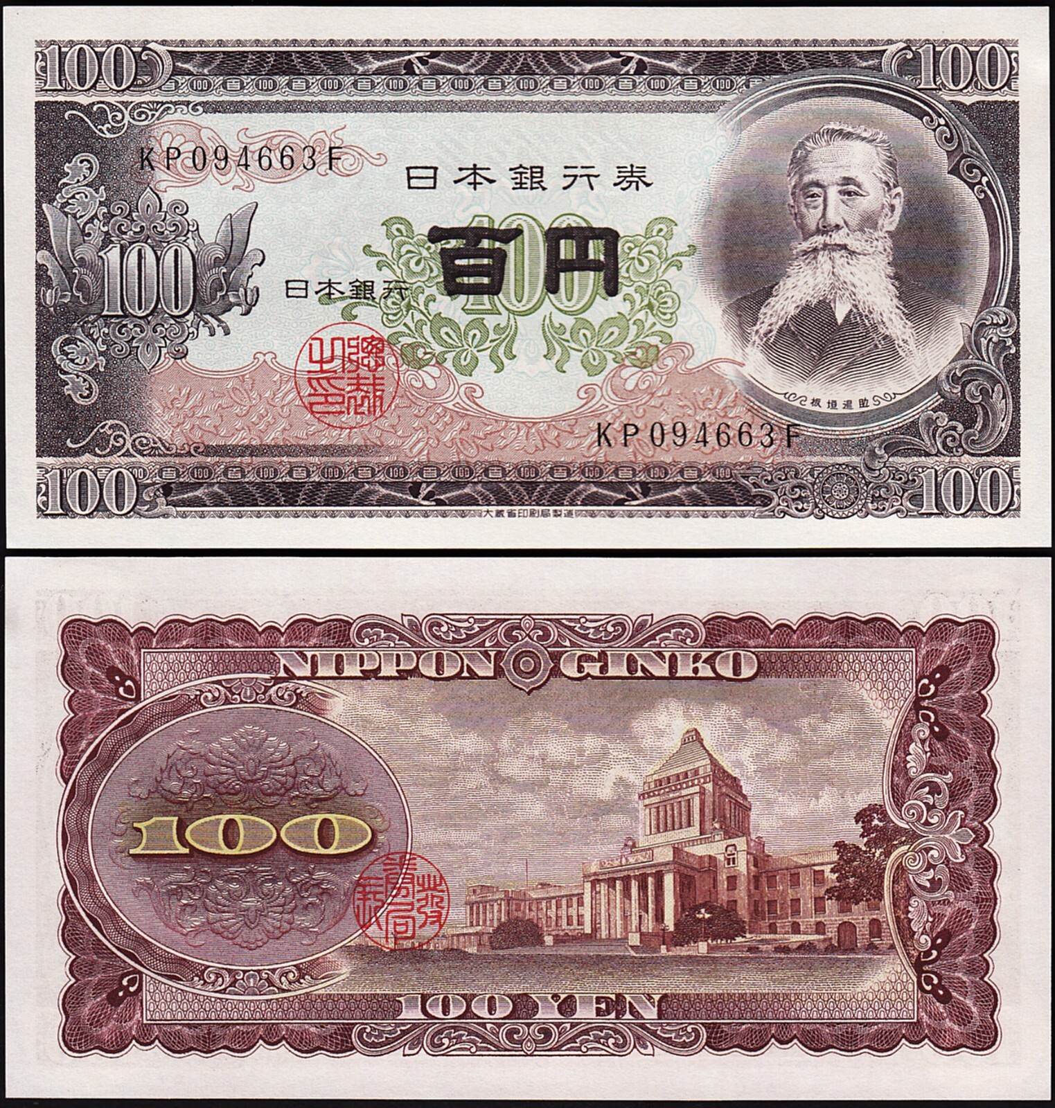 Japan 100 Yen 1953, P-90b