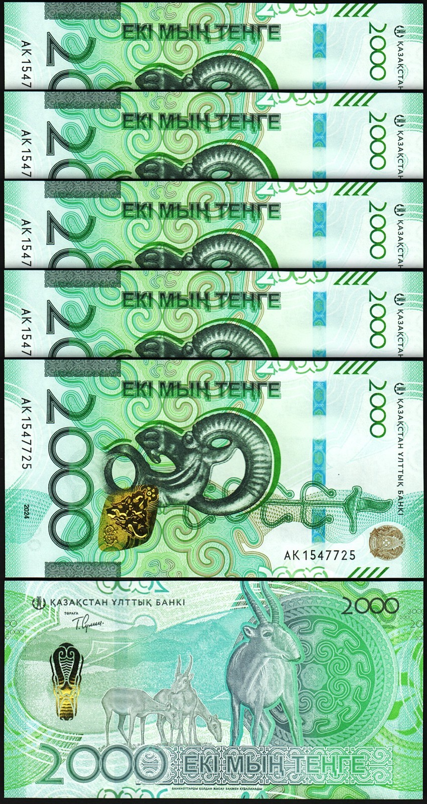 Kazakhstan 2000 Tenge 2024 2025, P-NEW, Prefix AK