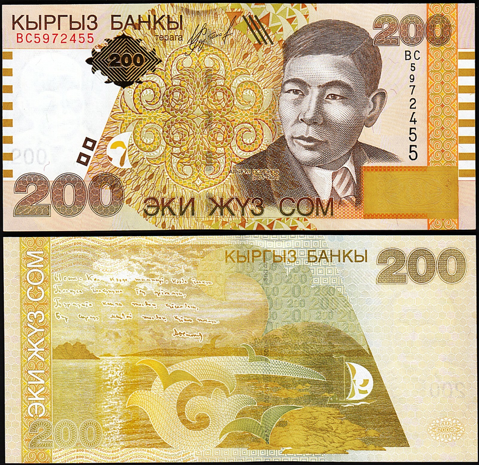 Kyrgyzstan 200 Som 2004 , UNC , P-22 , Prefix BC