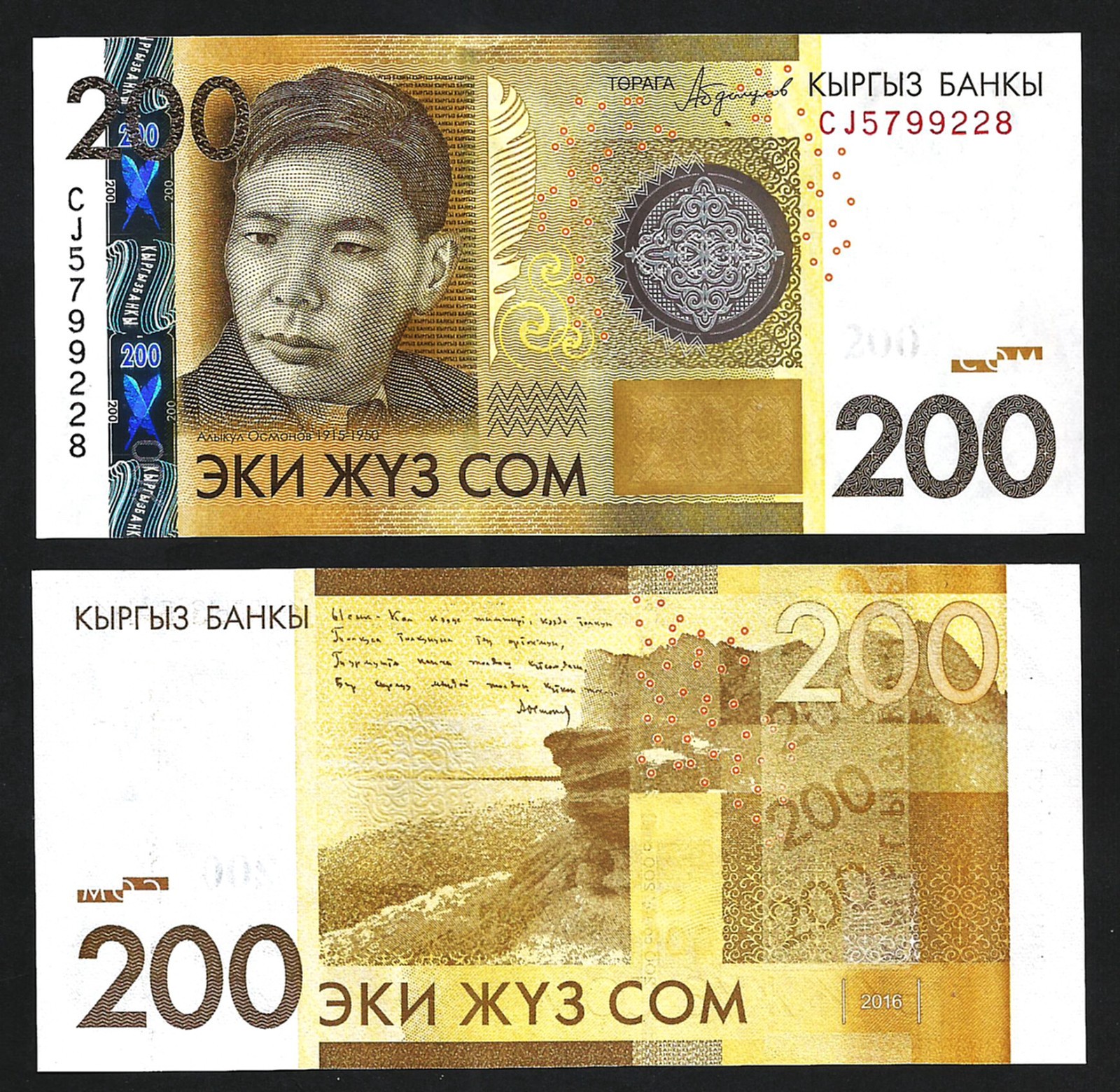 Kyrgyzstan 200 Som 2016, UNC, P-27b, Prefix CH