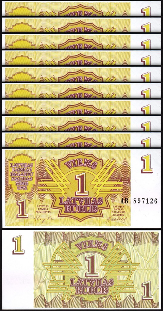 LATVIA 1 RUBLIS 1992, Pick.35, PREFIX AB