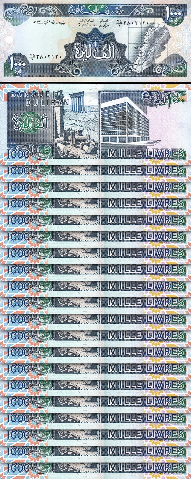 LEBANON 1000 LIVRES 1991, P-69b