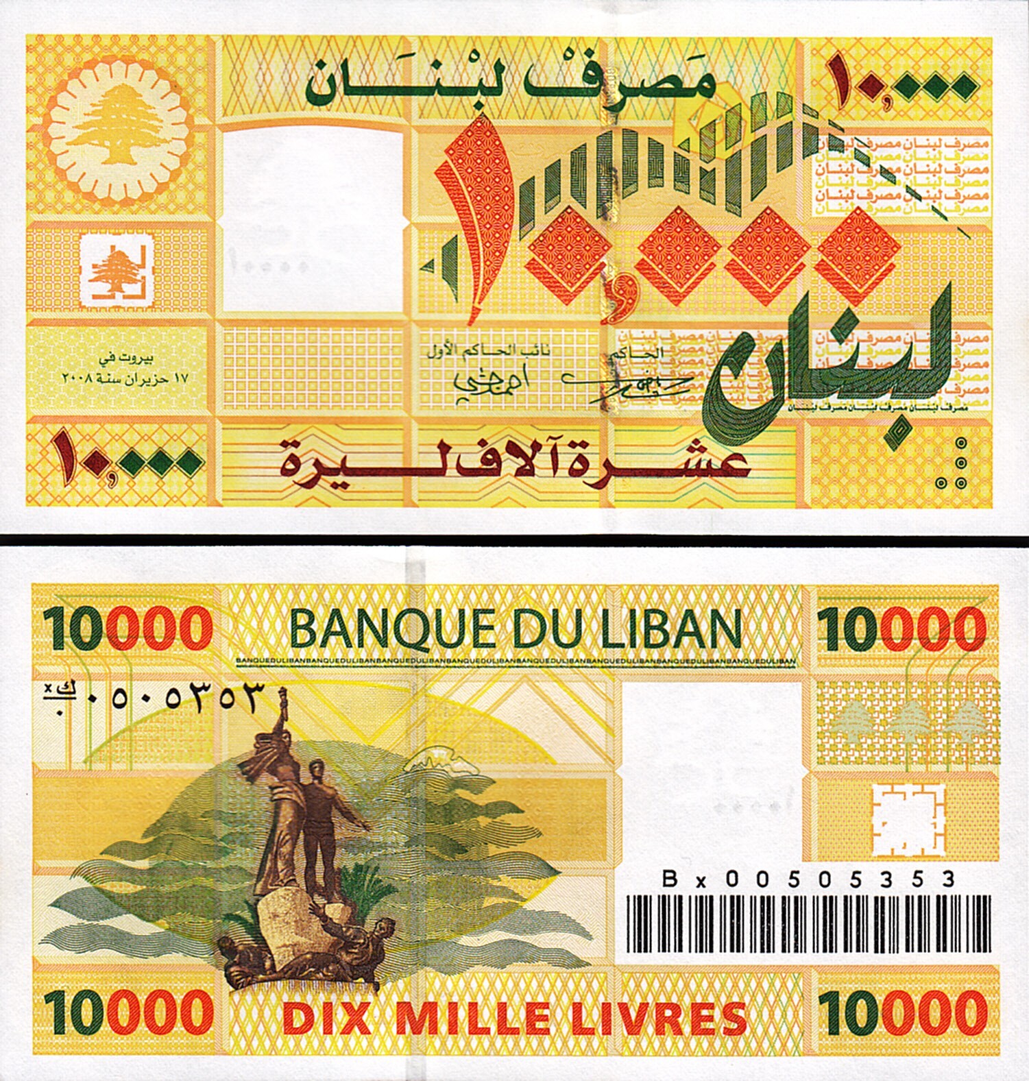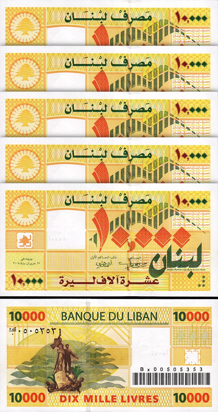 Lebanon 10000 Livres 2008, P-86br, Replacement Prefix Bx