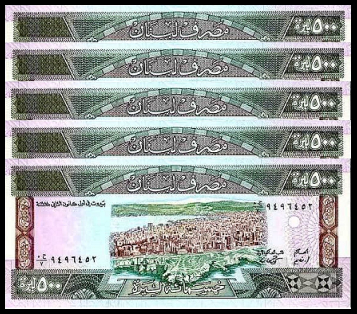 Lebanon 500 Livres 1988 , UNC-, 5 Pcs LOT , P-68