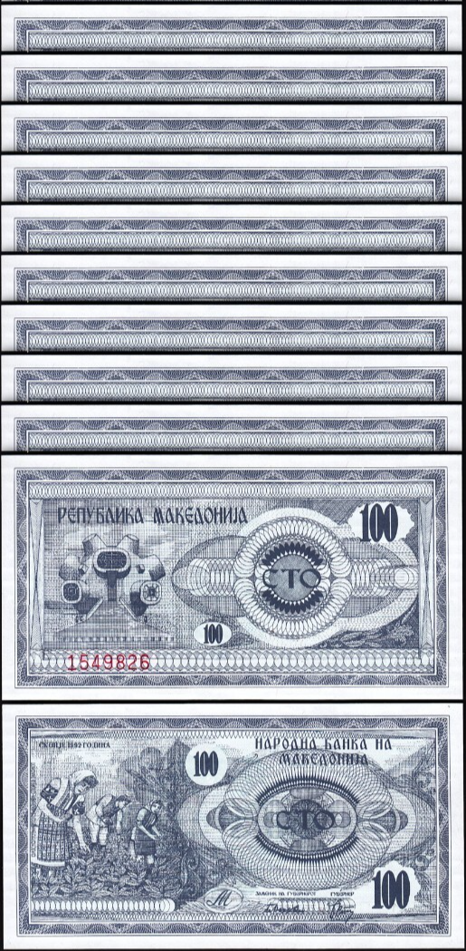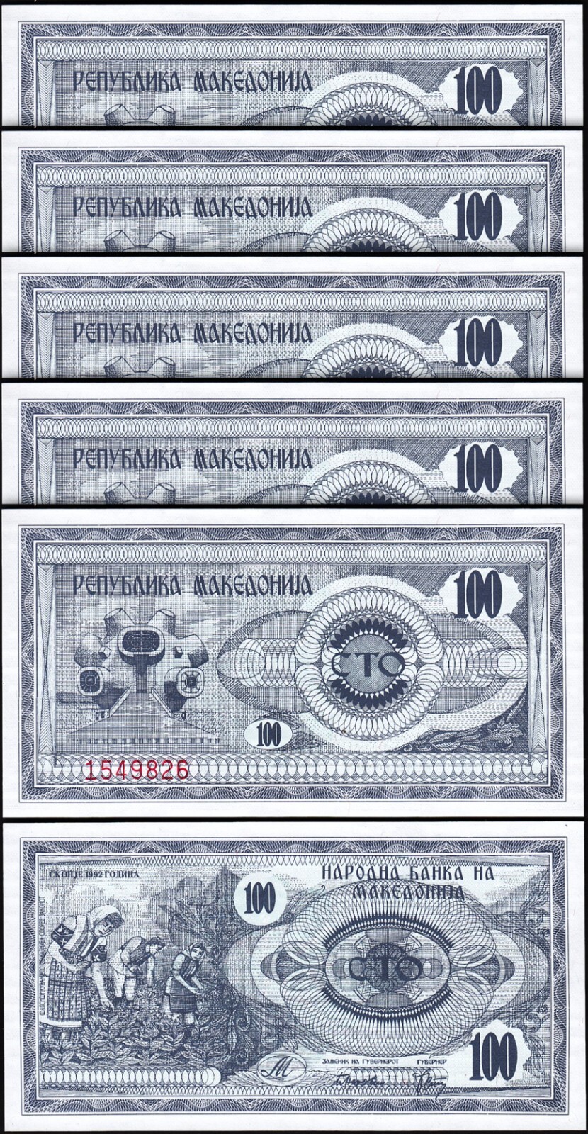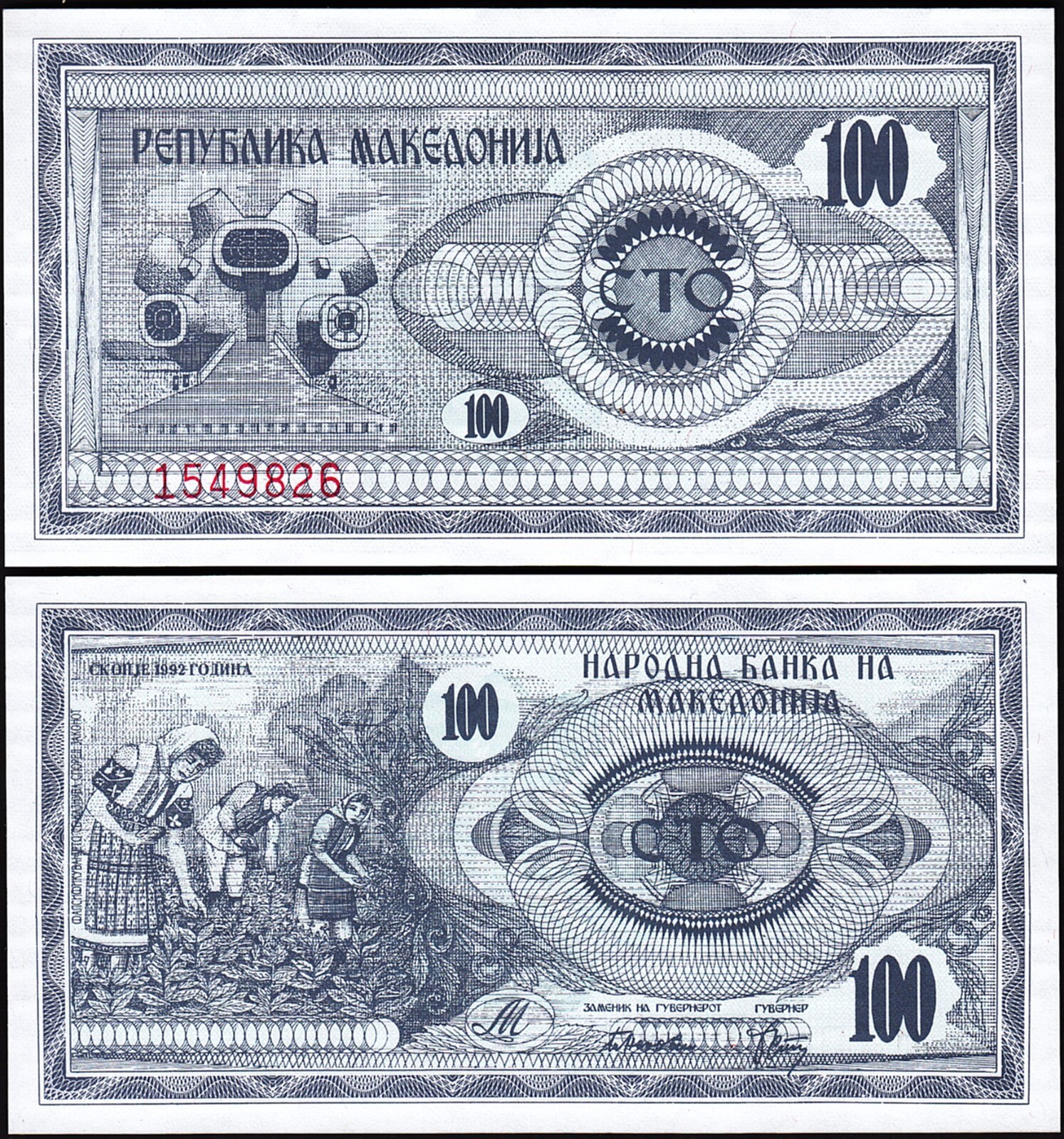 Macedonia 100 DENAR 1992, P-4, First Issue