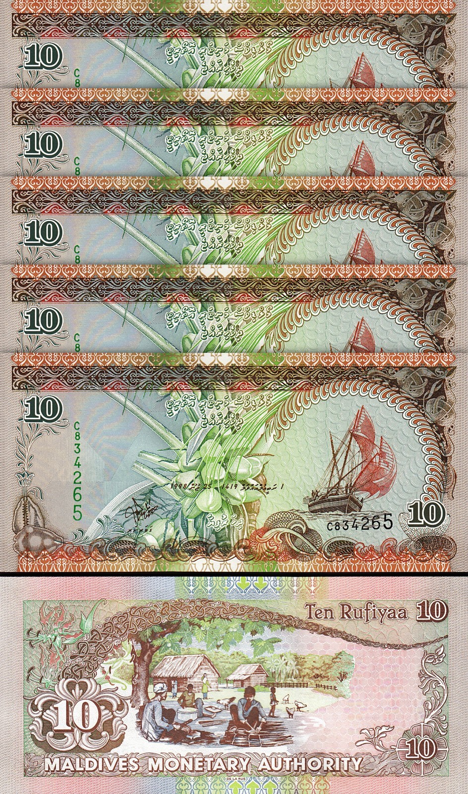 Maldives 10 Rufiyaa 1998, P-19a, Prefix C