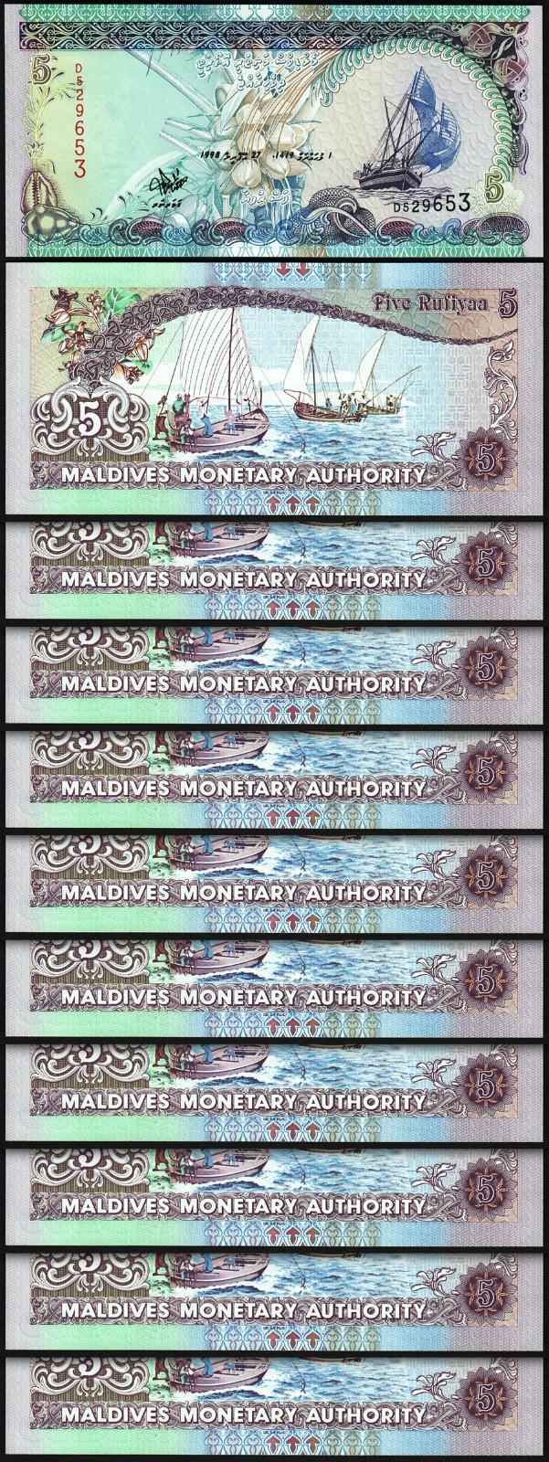 Maldives 5 Rufiyaa 1998, P-18b, Prefix D