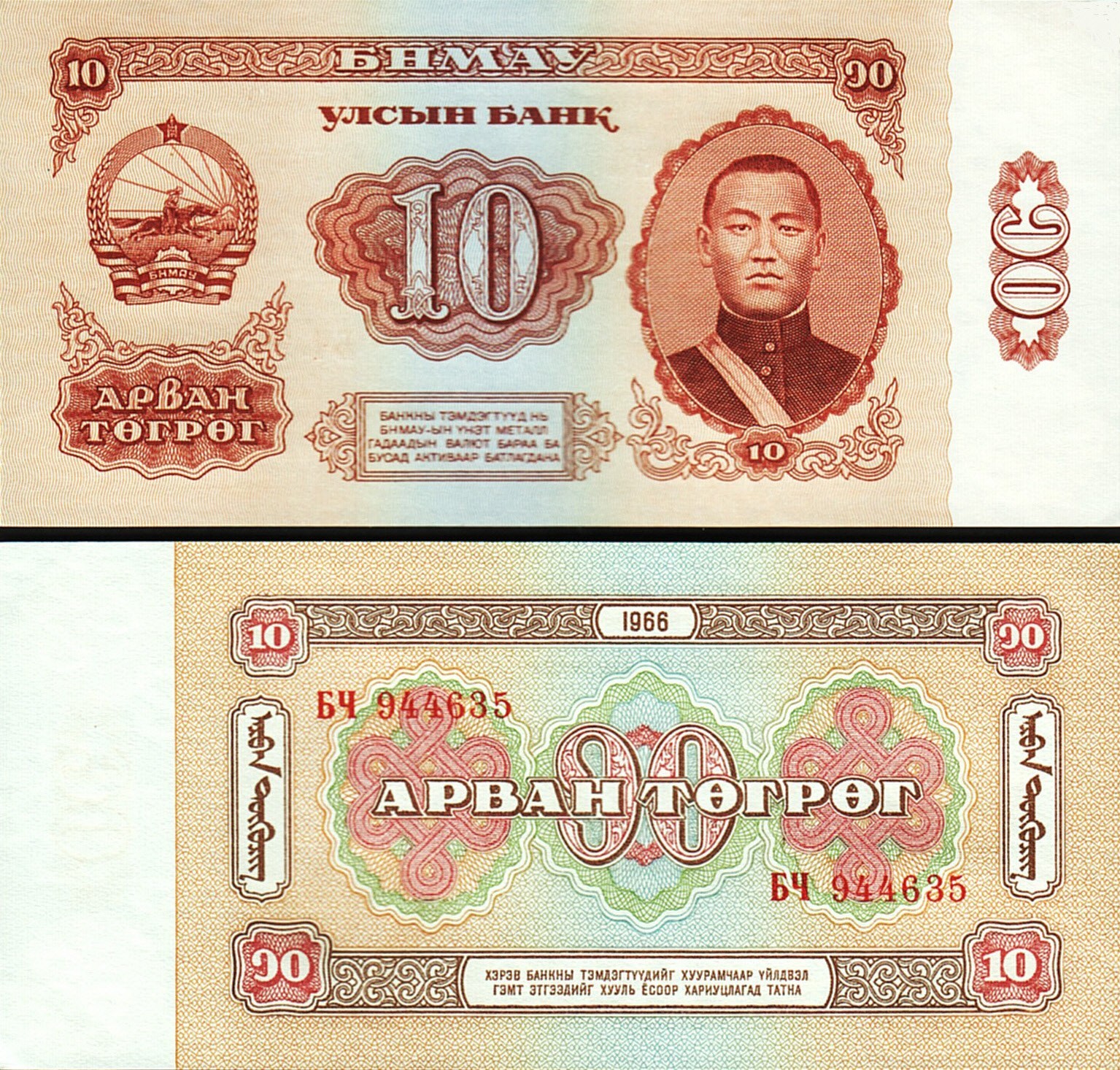 MONGOLIA 10 TUGRIK 1966, Pick 38