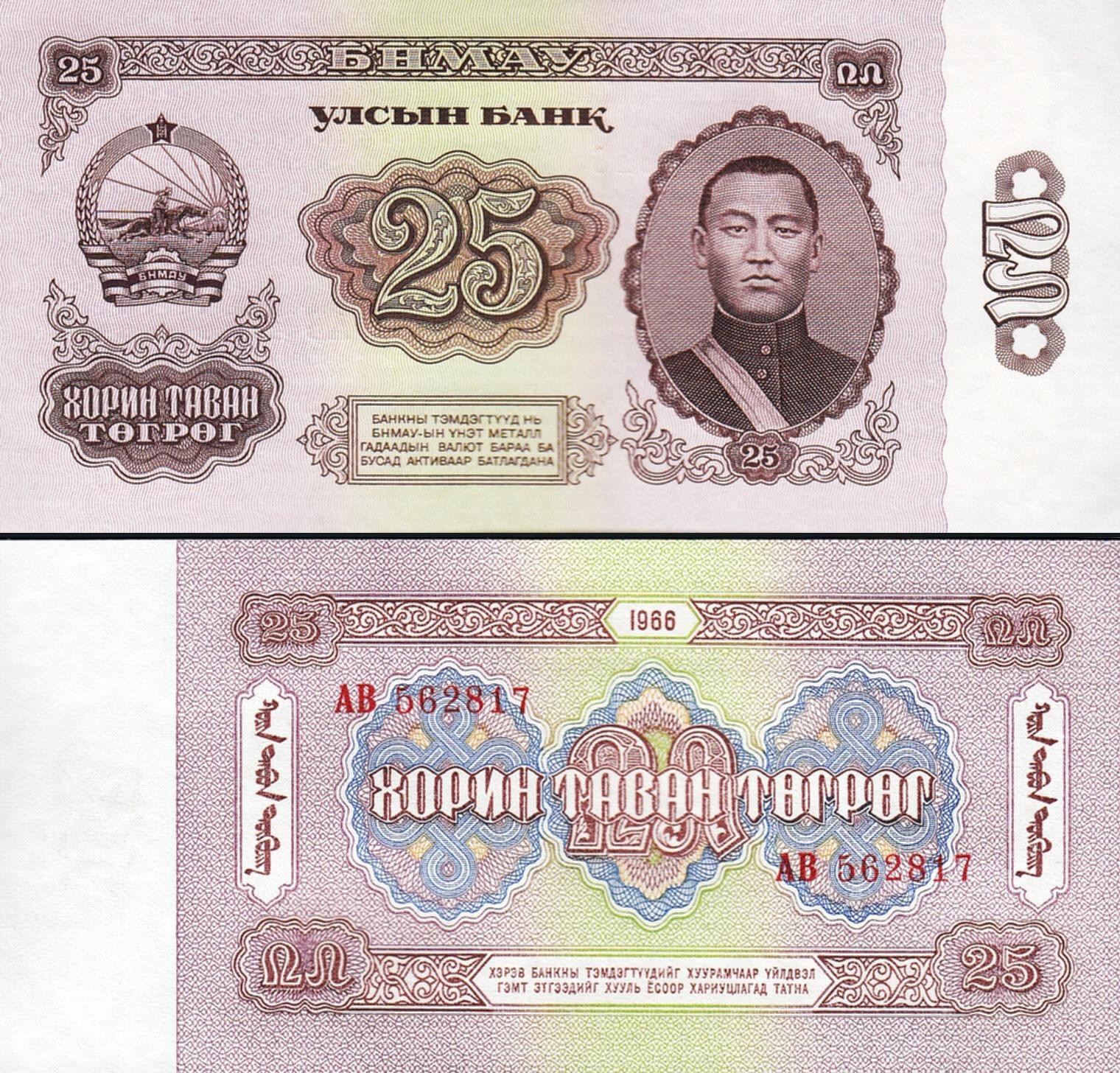 MONGOLIA 25 TUGRIK 1966, Pick 39